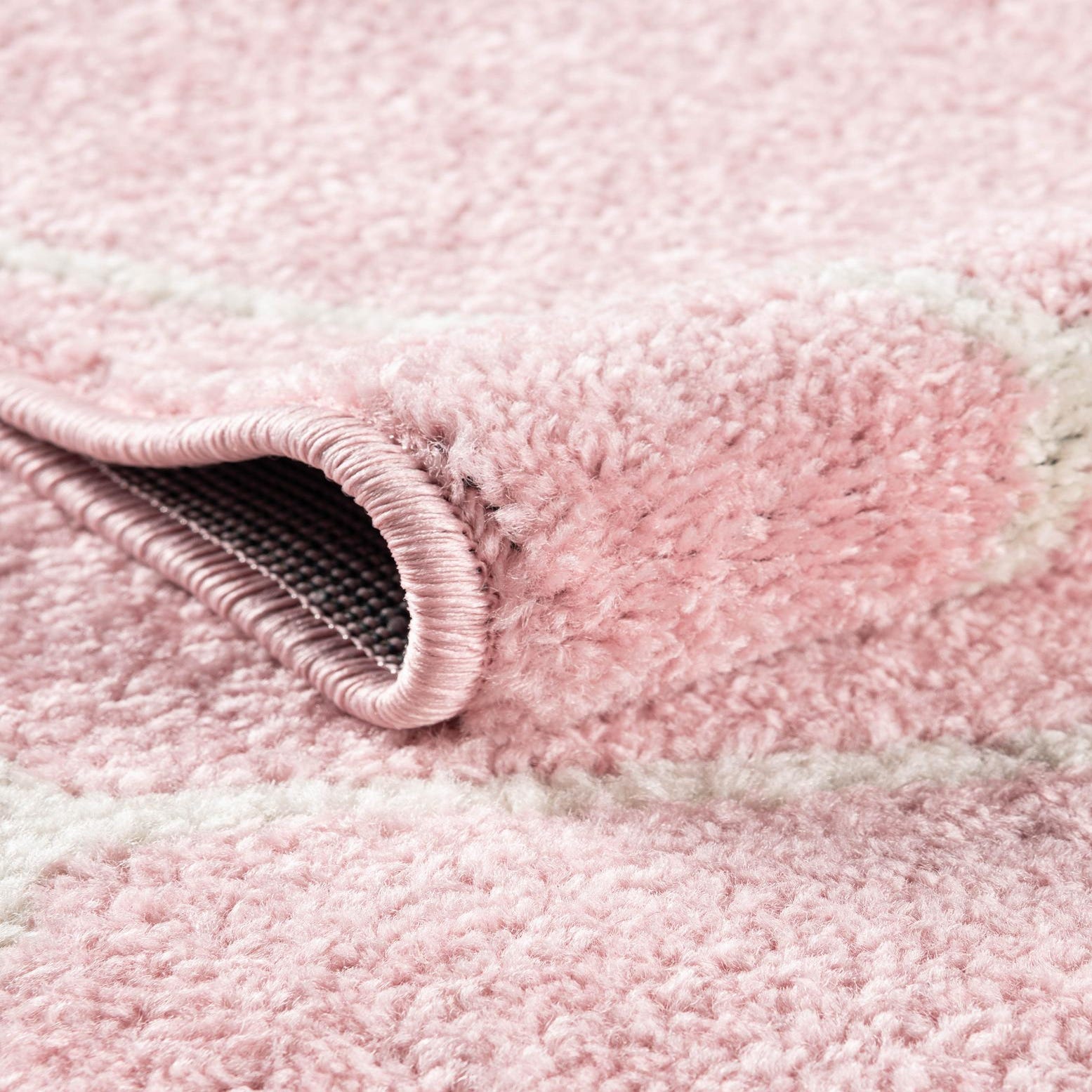 This shape and palette work well as a focal point in a feminine bedroom or nursery, layered under a round bistro set, or used to anchor a cozy seating area in a contemporary living room. Pair it with light woods and muted metallic accents for a Scandinavian-inspired scheme, or use it to soften a modern space with white or neutral furnishings.