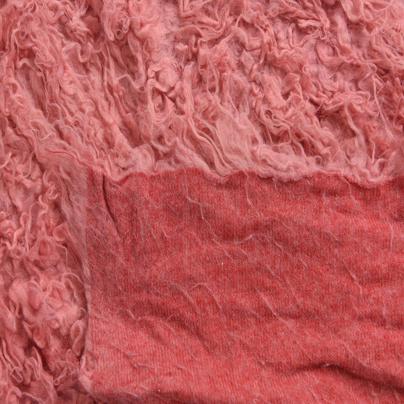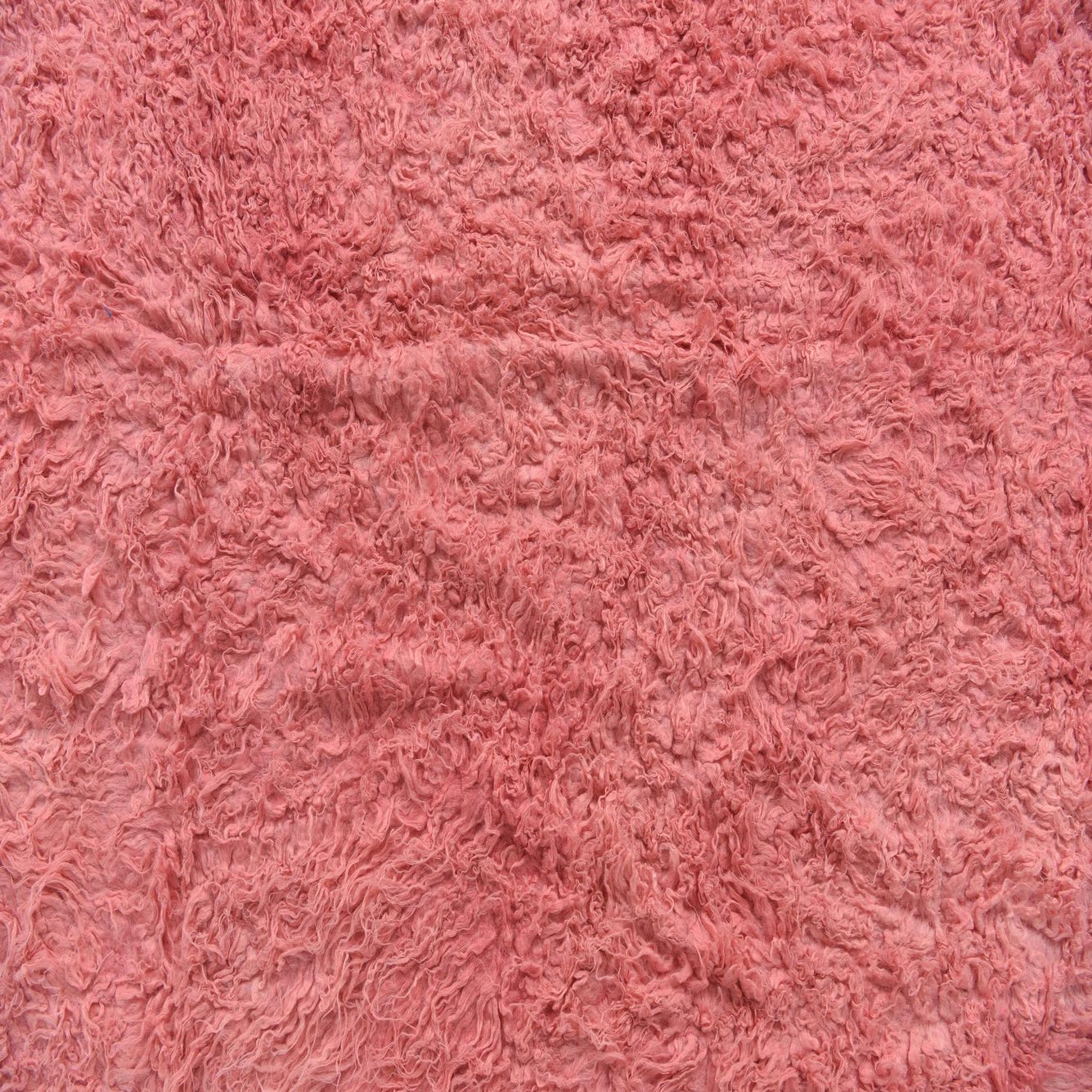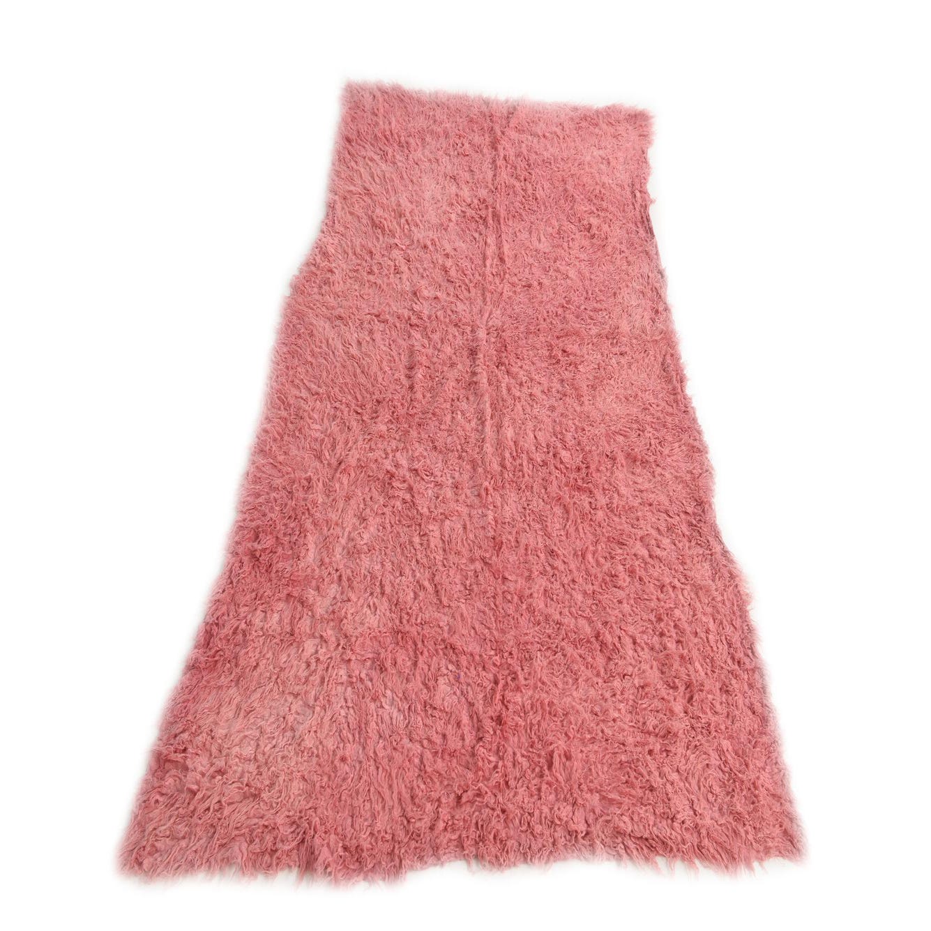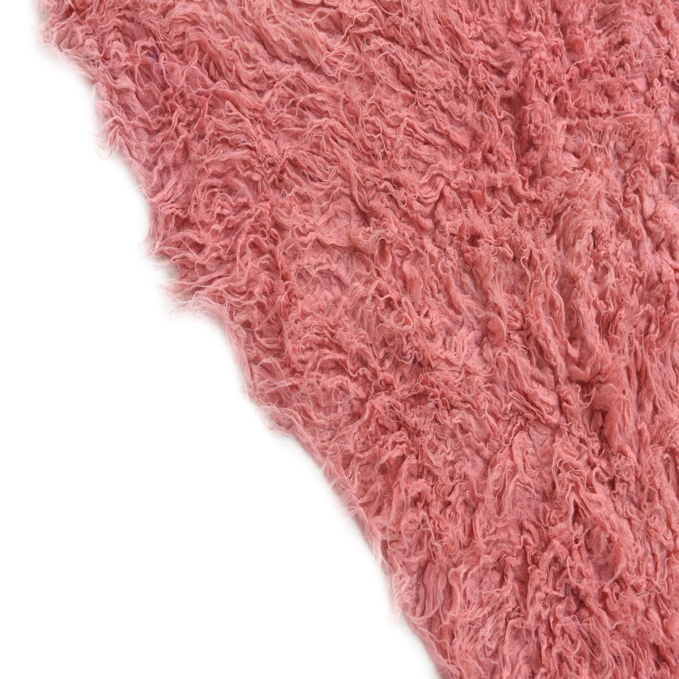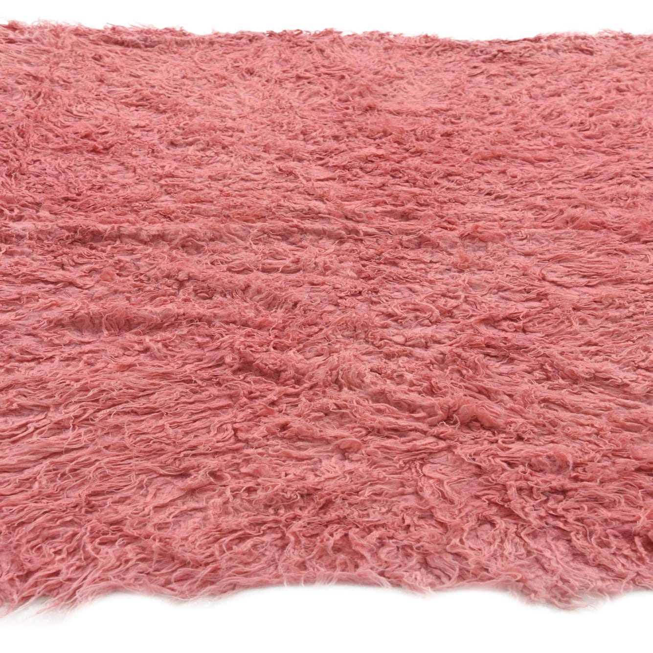 A plush 8 ft pink shag runner rug, handmade from wool, featuring a soft, textured pile.
