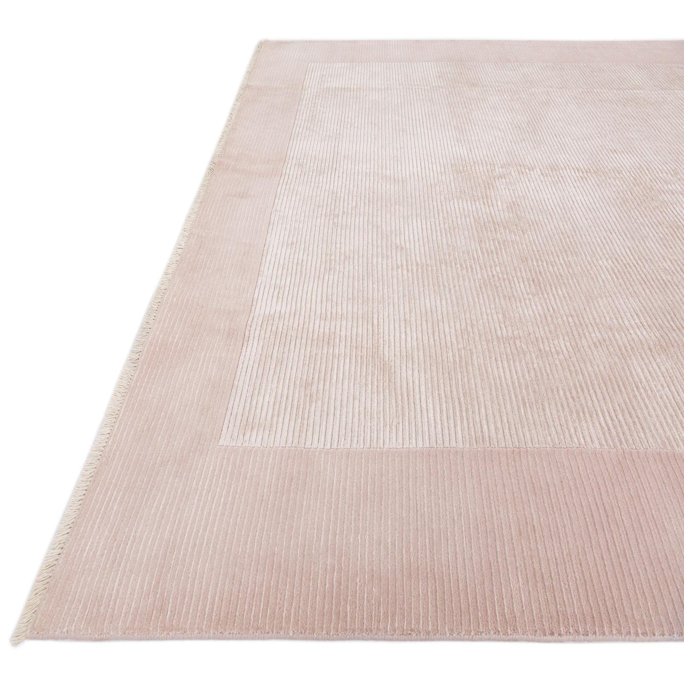 A rectangular 8x11 Darya collection rug in varying shades of pink, featuring a subtle modern oriental border.