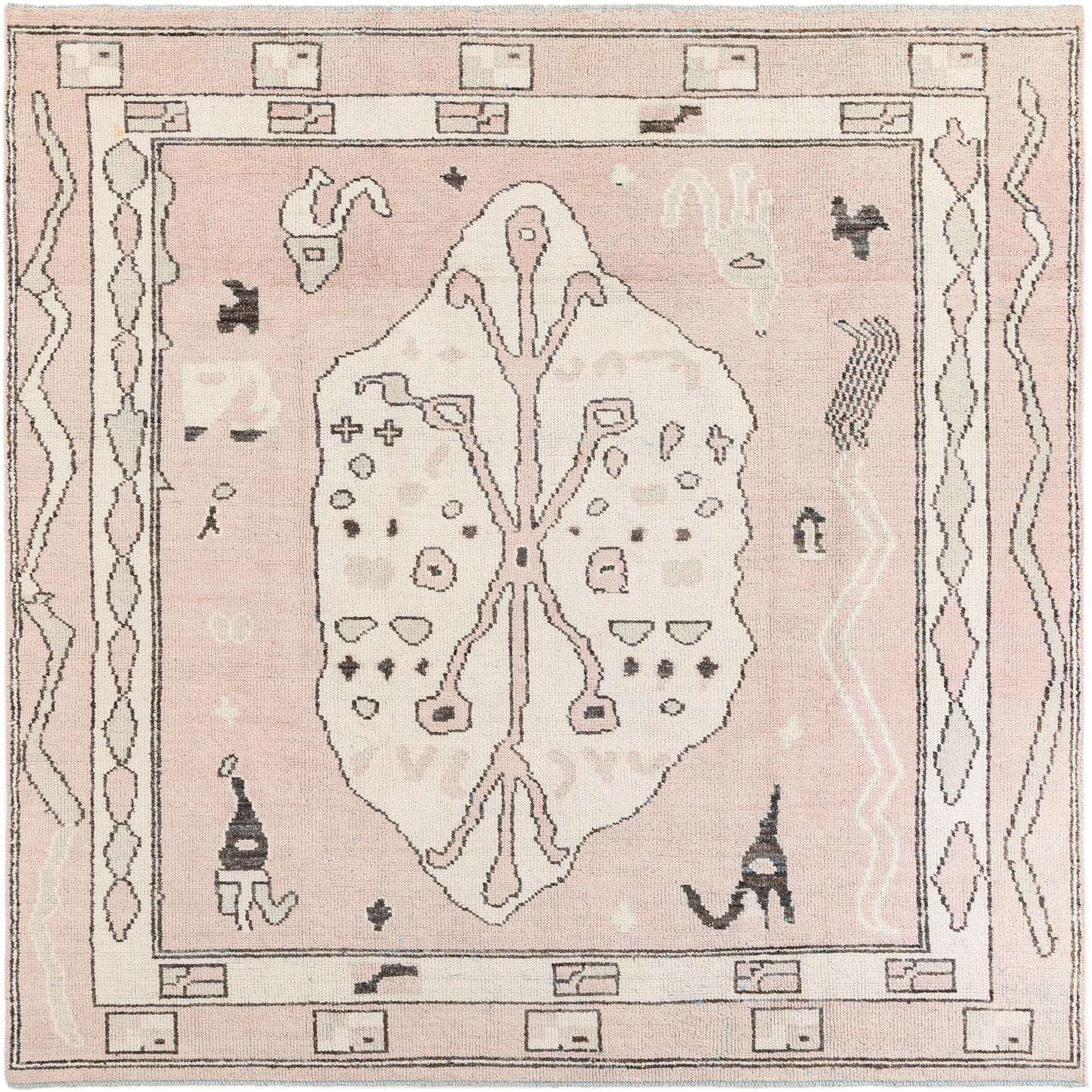 Primary color is Light Pink. Colors in this rug include: Light Pink, Black, Ivory.