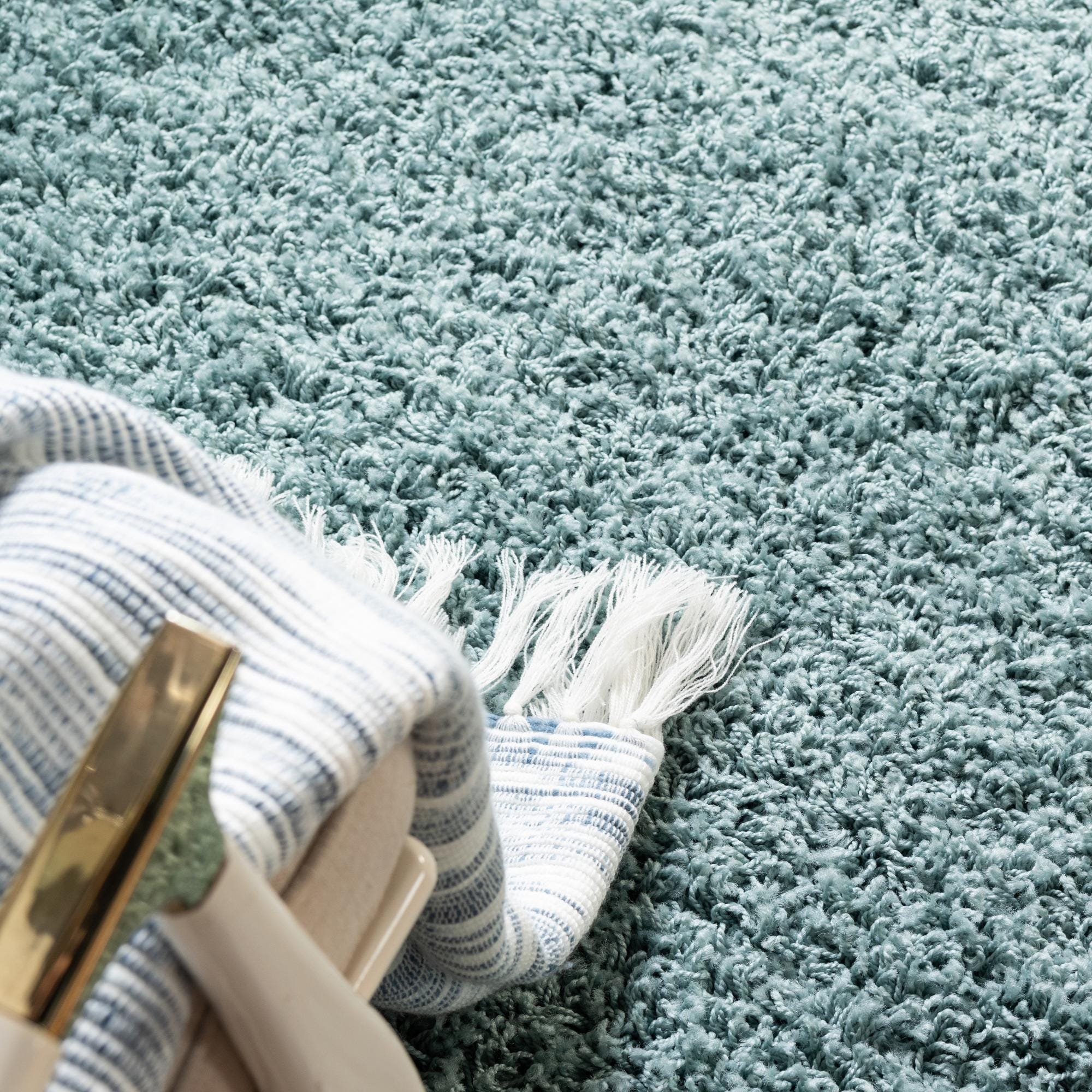 A plush, solid shag in light slate blue, this oval rug offers a soft, uniform surface with a lush, tactile pile that invites bare feet. The dense, twisted fibers create a gentle, cloud-like texture while maintaining a clean, single-color appearance that complements a variety of interiors. Machine-made from 100% polypropylene, the construction delivers consistent pile height and reliable structure for everyday placement.