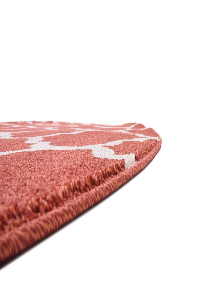 The Lattice Collection offers a 10 Ft Round rug that is machine-woven from 100% polypropylene, ensuring durability and ease of maintenance. The lattice pattern of the rug displays a series of interlocking shapes, providing a modern geometric aesthetic. The background color of light terracotta is complemented by the beige outlines and rust red infill of the pattern, offering a warm and inviting color palette.