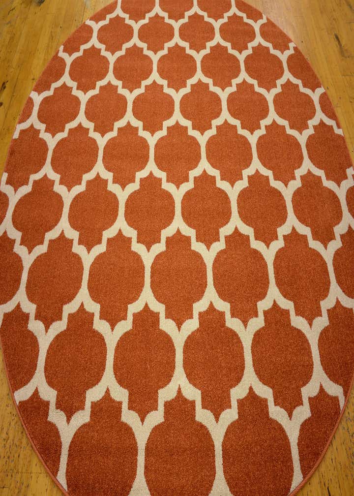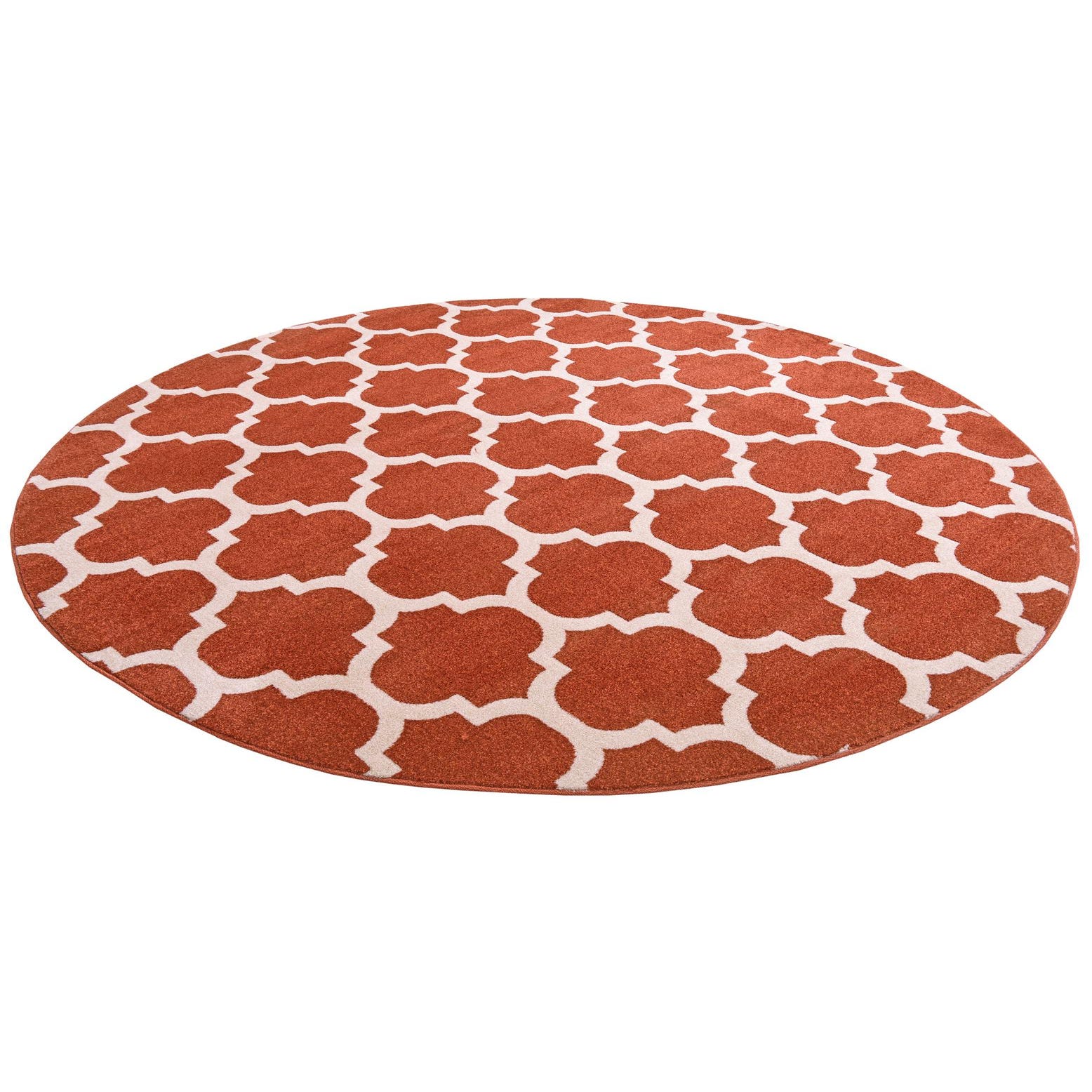 This Lattice Collection rug brings a modern twist to classic design, featuring a bold lattice pattern in a striking light terracotta and beige palette with rust red highlights. The 8 ft round shape is perfectly suited for rounding out seating areas or underpinning furniture in a balanced fashion. Machine woven of 100% polypropylene, this rug provides durability without compromising on its soft texture, ensuring an inviting feel underfoot. The surface is also stain-resistant and shed-free, ensuring longevity and ease of maintenance.