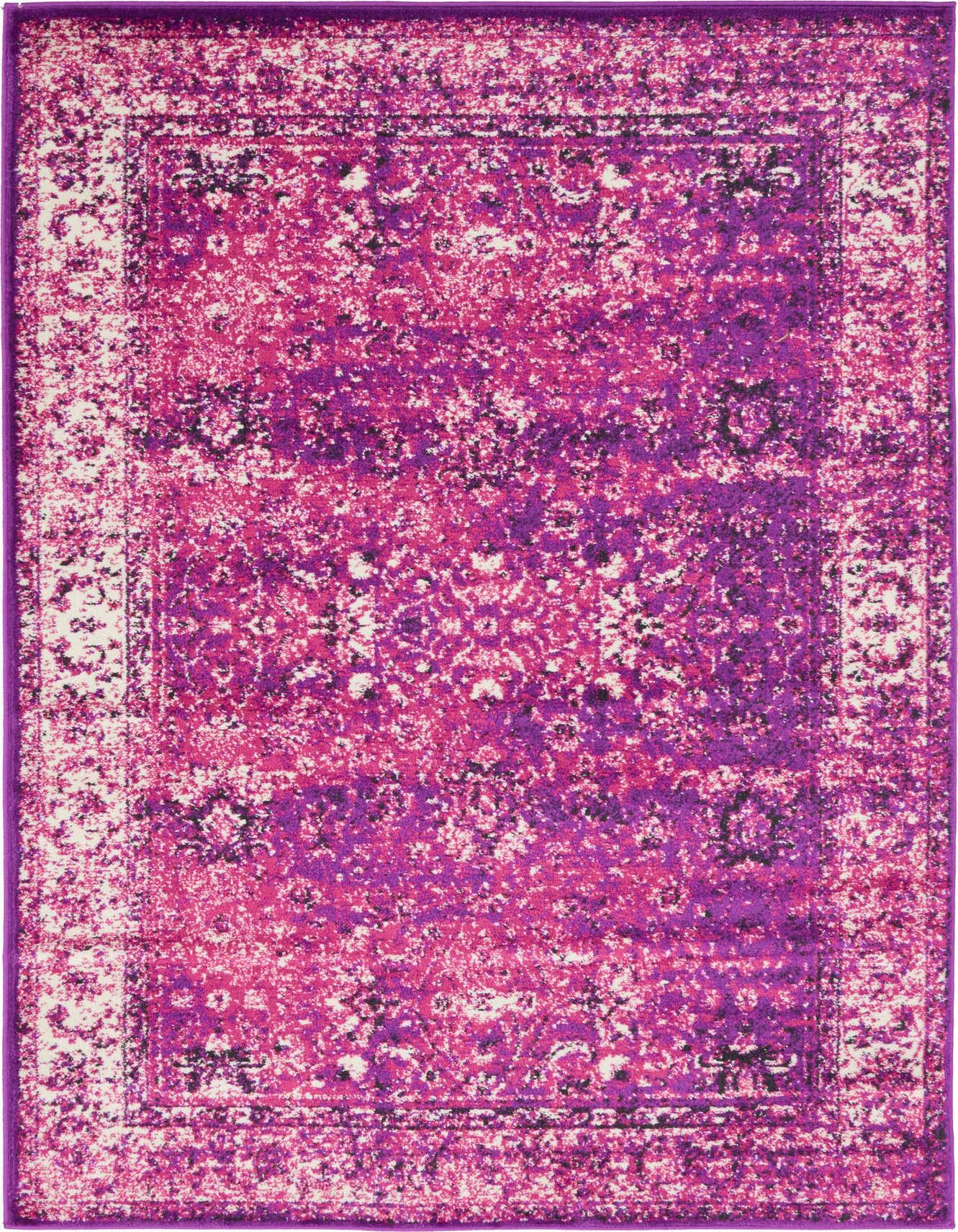 Primary color is Lilac. Colors in this rug include: Lilac, Black, Ivory, Violet.