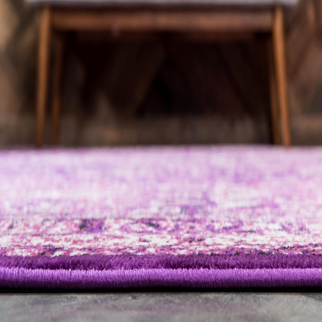Primary color is Lilac. Colors in this rug include: Lilac, Black, Ivory, Violet.