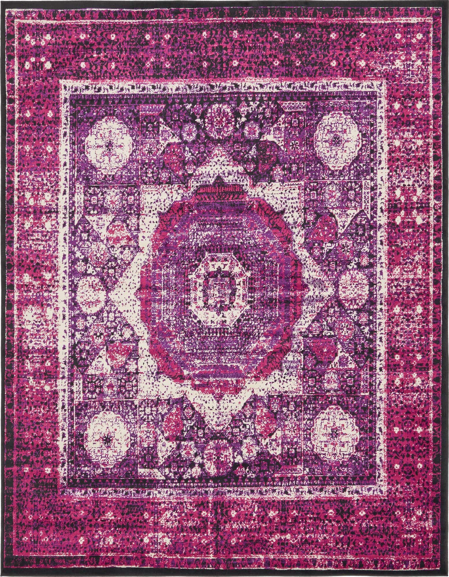 Primary color is Lilac. Colors in this rug include: Lilac, Black, Violet, Ivory.