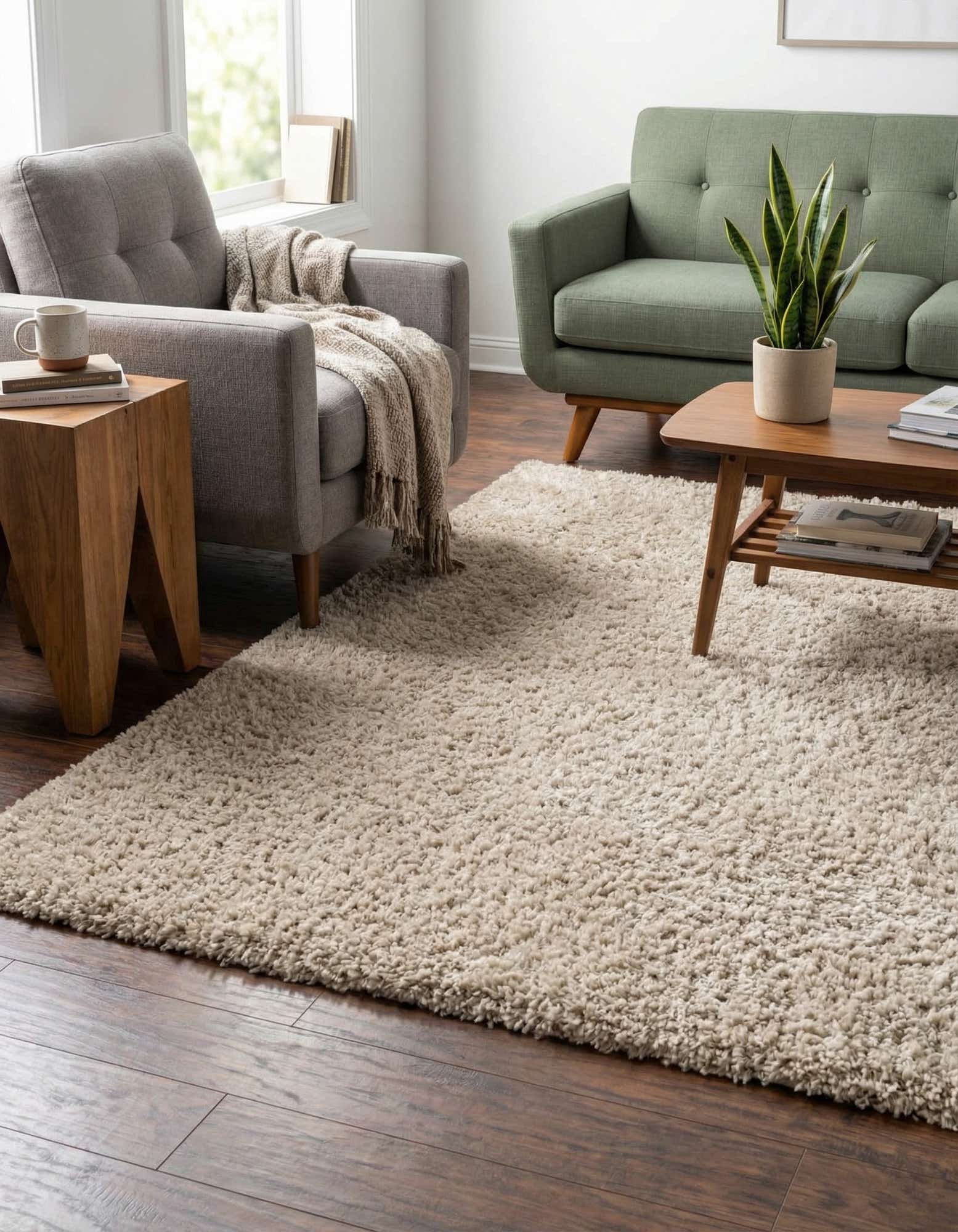 A rectangular 4x6 ivory shag area rug with a thick, plush pile, perfect for a cozy living room or bedroom.