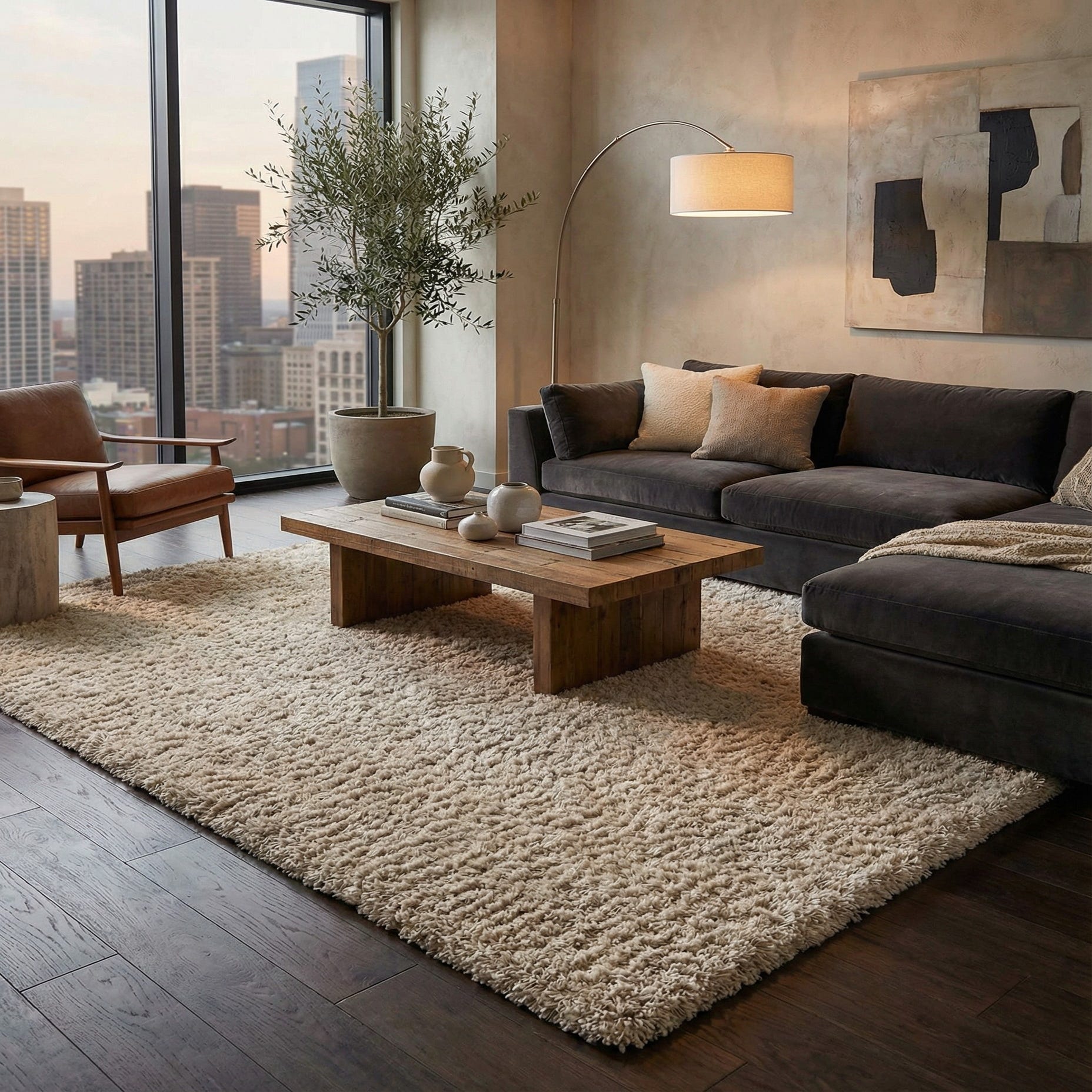 The neutral linen tone makes this piece versatile across many interiors. It pairs naturally with Scandinavian and modern furnishings, softens industrial elements like metal and concrete, and complements warm wood finishes in transitional rooms. Place it beneath a low-profile sofa to define a living area, layer it in a cozy reading nook, or run it alongside a bed for a soft, welcoming step each morning.