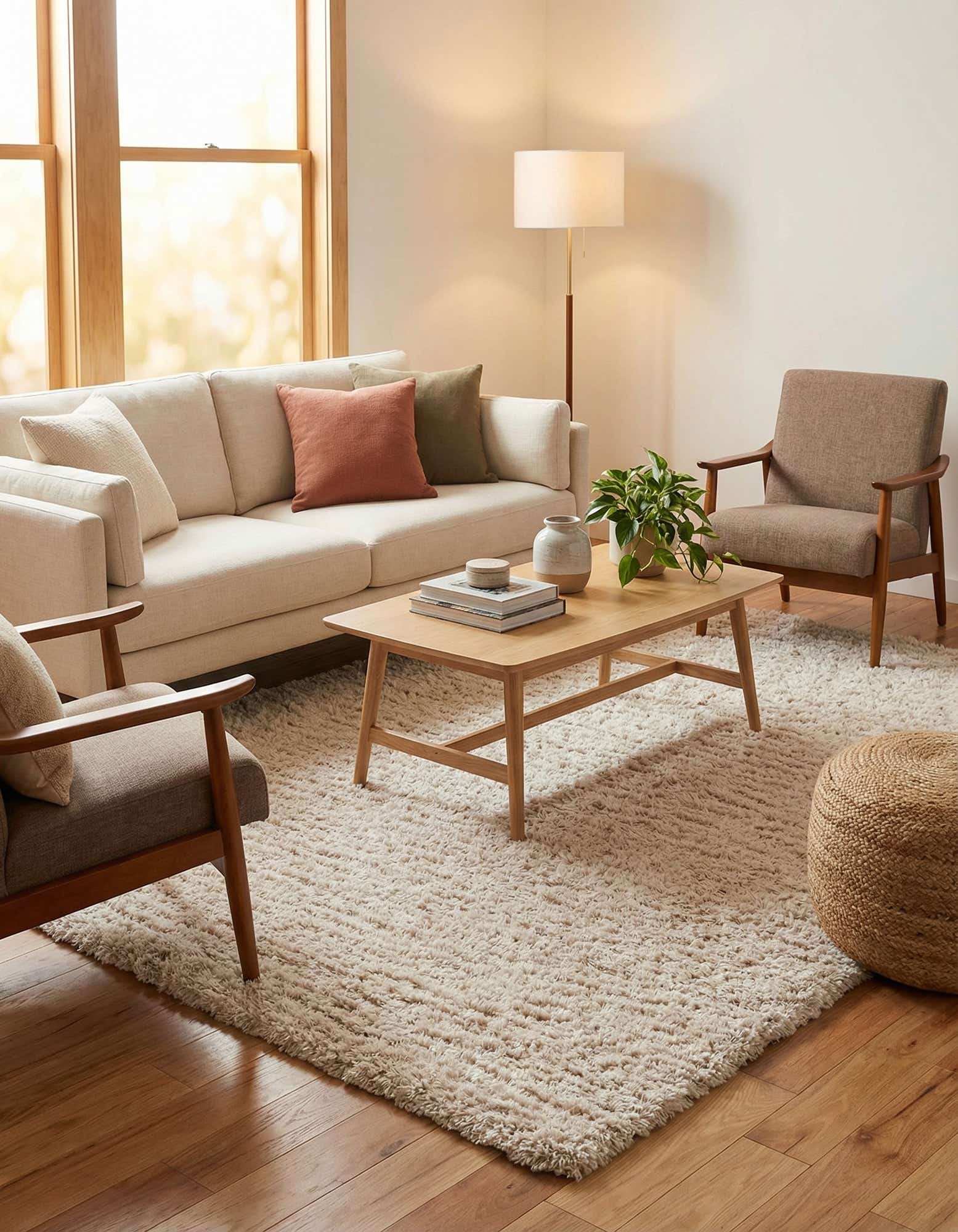 Machine-made from 100% polyester, this piece balances soft comfort with everyday practicality. It pairs well with contemporary and Scandinavian interiors, low-profile sofas and natural wood furnishings, and brings warmth to a bedroom layered with linen bedding or a living area anchored by mid-century pieces. Use it to define a seating group, soften a reading nook, or add a comfortable layer underfoot in a master suite.
