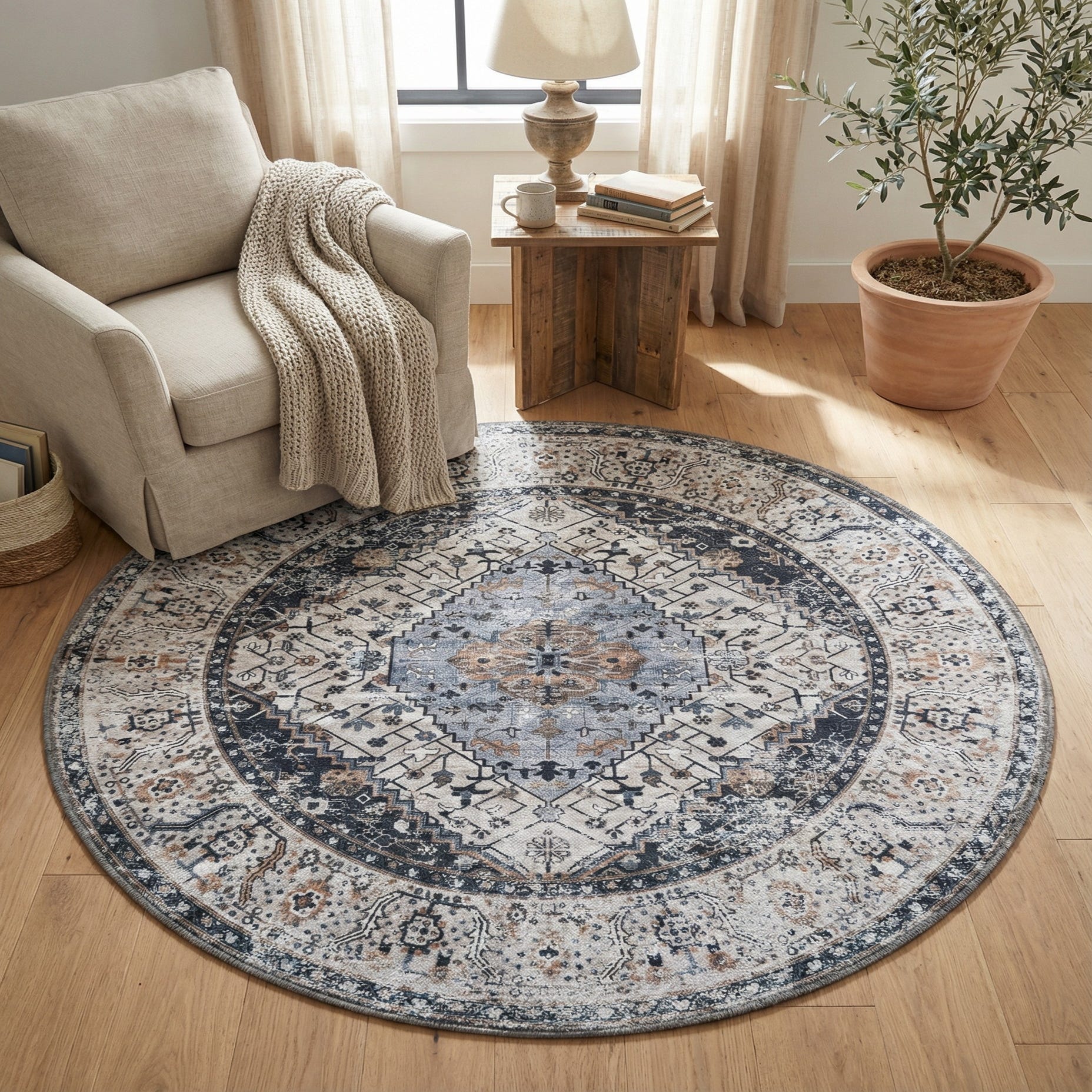 4' x 4' Washable Yara Round Rug