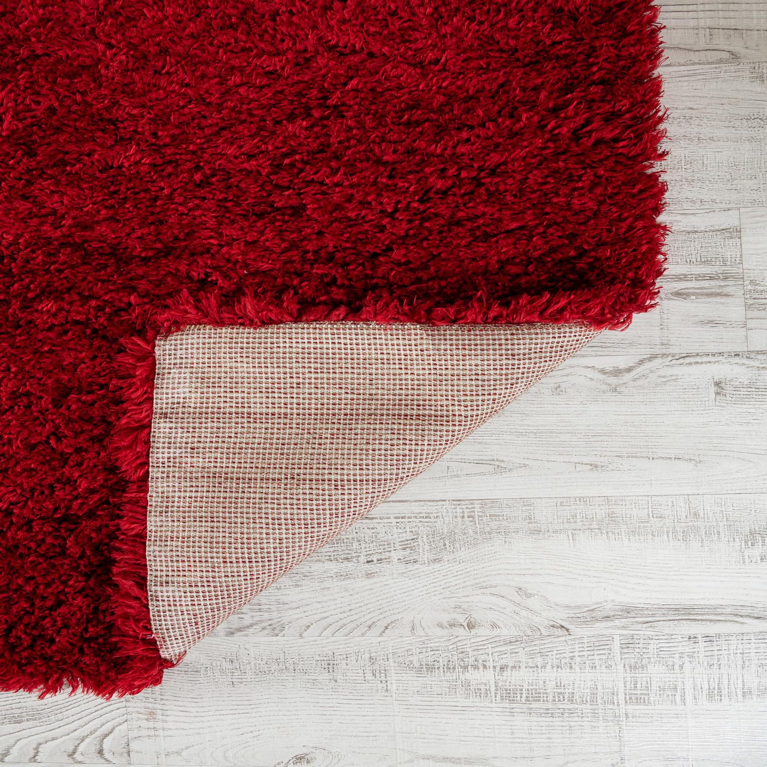 A plush 3x5 rectangular shag rug in a vibrant red color, showcasing its soft, textured pile.