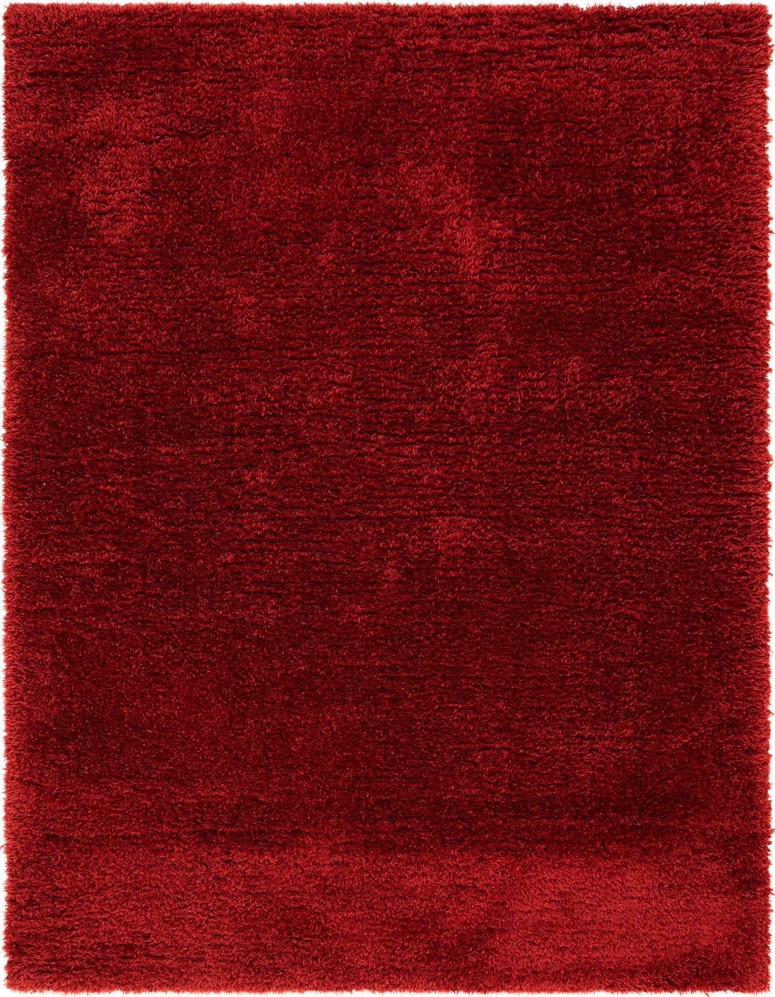 A rich Lipstick ground gives this shag rug a bold, single-color presence with subtle depth from the long, dense fibers. The unpatterned, allover surface puts texture at the forefront: run your hand across the pile and you’ll feel a plush, velvety nap that catches light differently as the strands lie in different directions. Machine-made from 100% polyester, the construction creates a soft, tactile surface with a slight sheen that enhances the color without competing with other room elements.