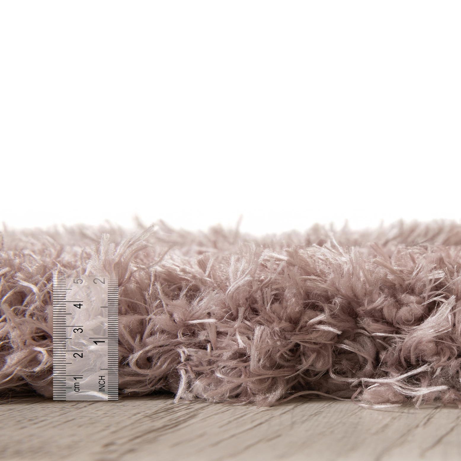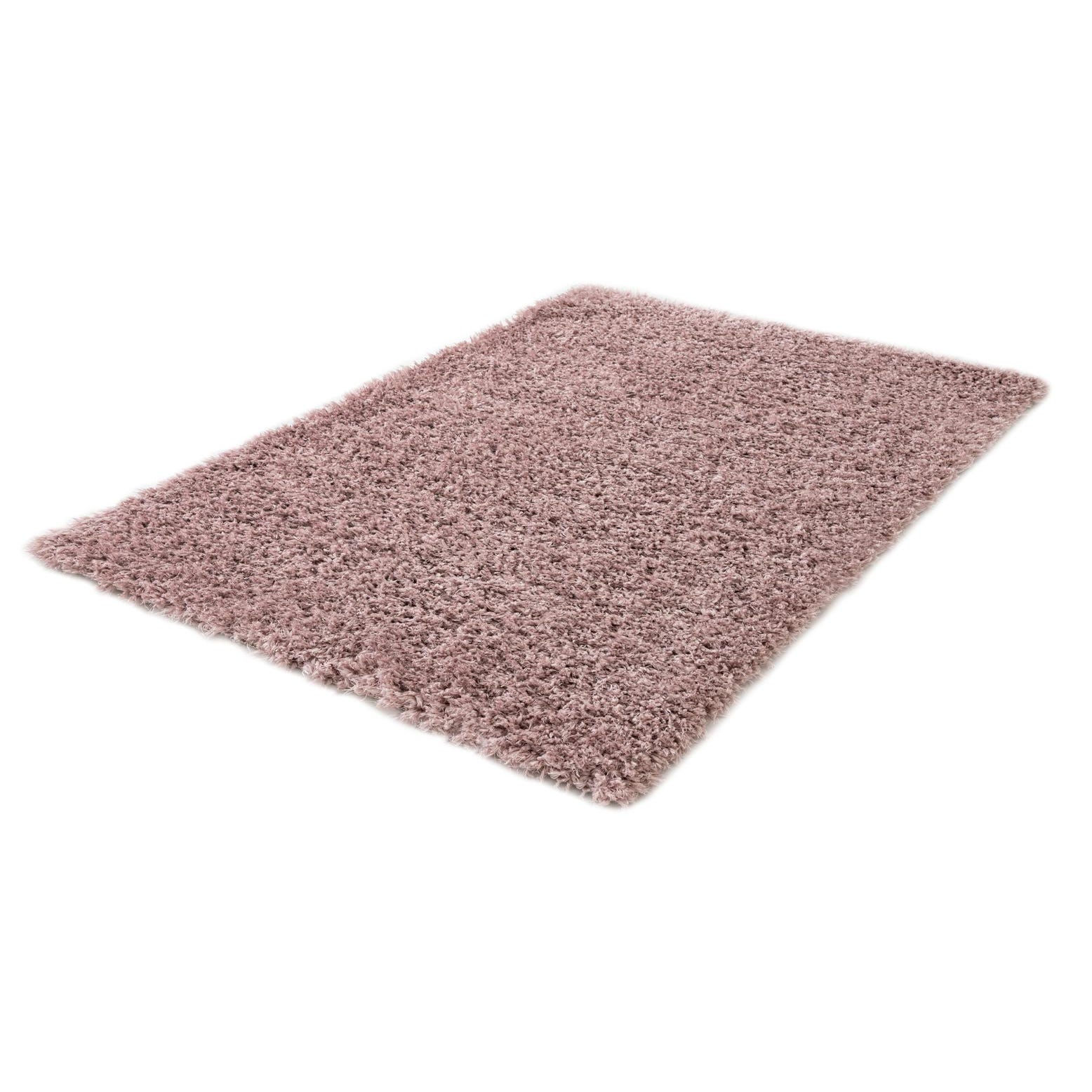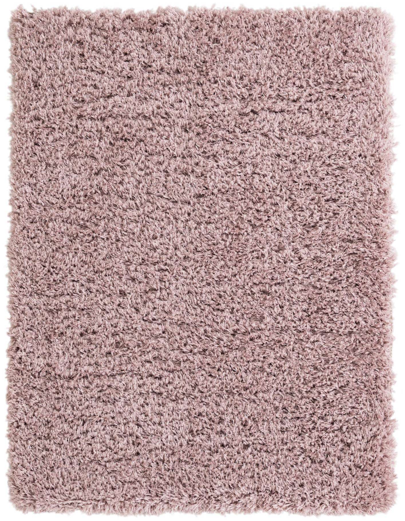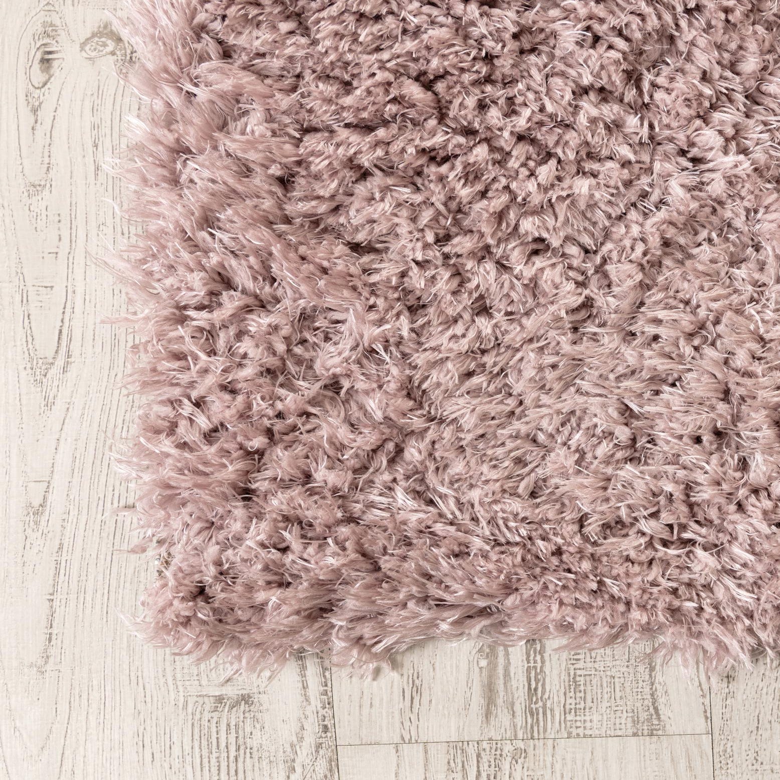 A plush shag in Lorelei brings a soft, muted rose tone to any room. The surface is made of long, silky polyester strands that create a uniform, high-pile field with gentle tonal variation where the fibers catch the light. The overall look is simple and modern — a solid, textured plane rather than a patterned statement — that adds visual warmth and a cozy underfoot feel.