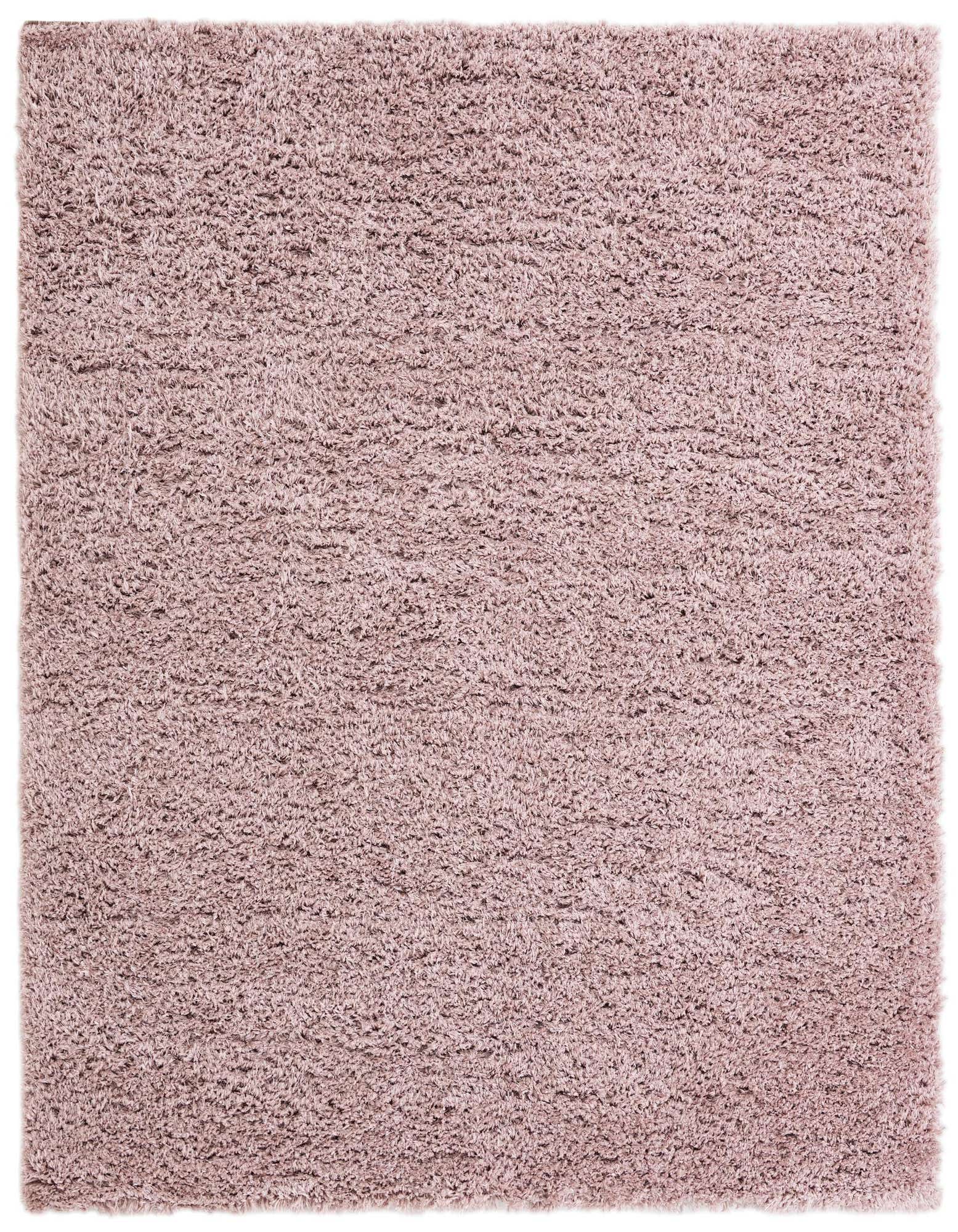 A plush 8x10 rectangular shag rug in a soft pinkish-purple hue, offering a luxurious and comfortable feel.