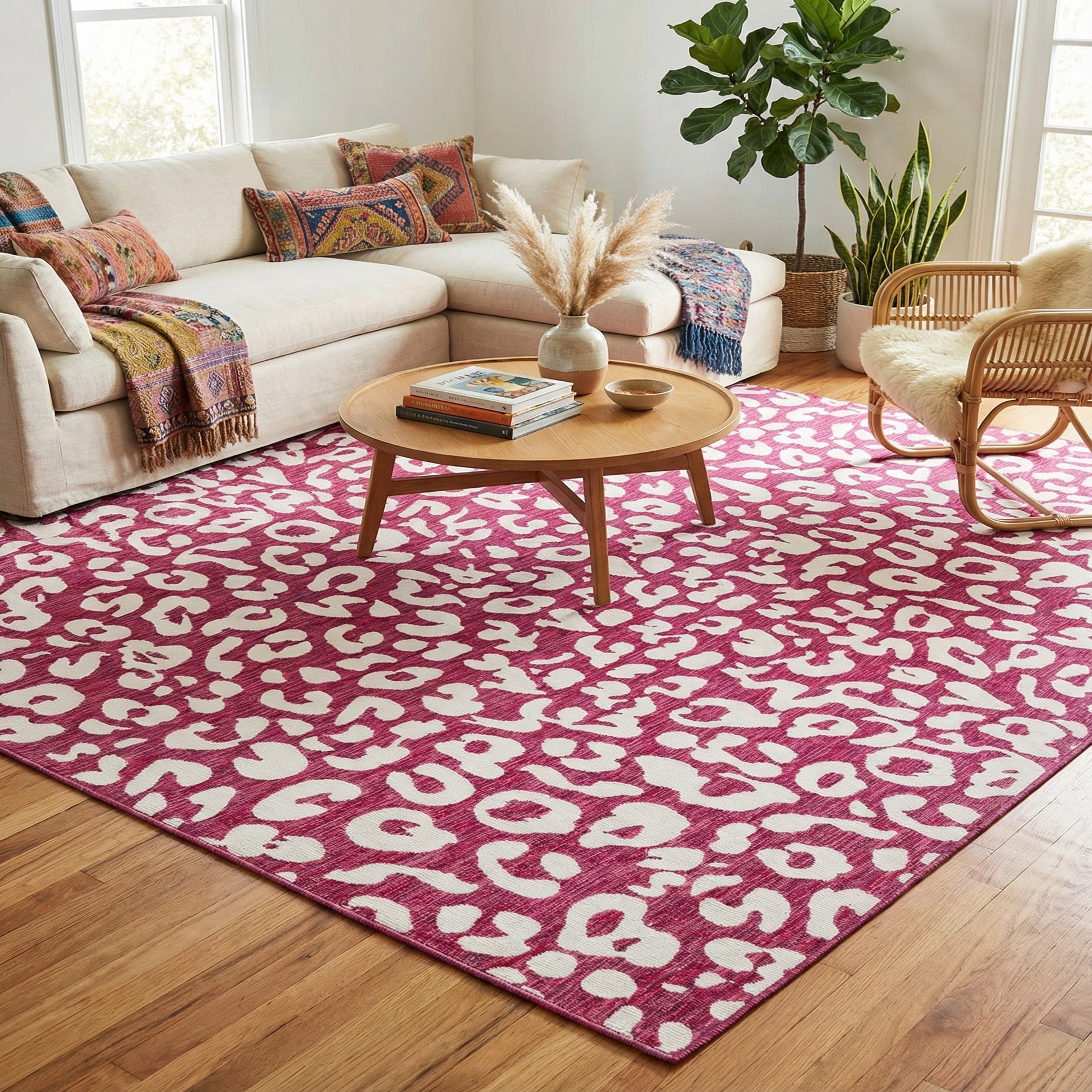 Machine-made of 100% polypropylene, the rug has a low-profile, flatwoven texture that feels firm yet slightly textured beneath your feet. That construction makes it a great choice for casual indoor or outdoor settings — think a covered patio, sunroom, entryway, or a family-friendly living area. Pair it with natural woven materials like rattan or seagrass, crisp white or neutral upholstery to let the magenta pop, or mix with brass and warm woods for a modern-bohemian vibe.
