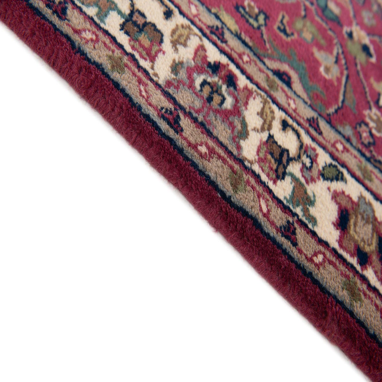 A long 11 ft runner rug in the Isfahan collection, featuring a rich red and pink floral pattern with a cream border, ideal for a hallway.