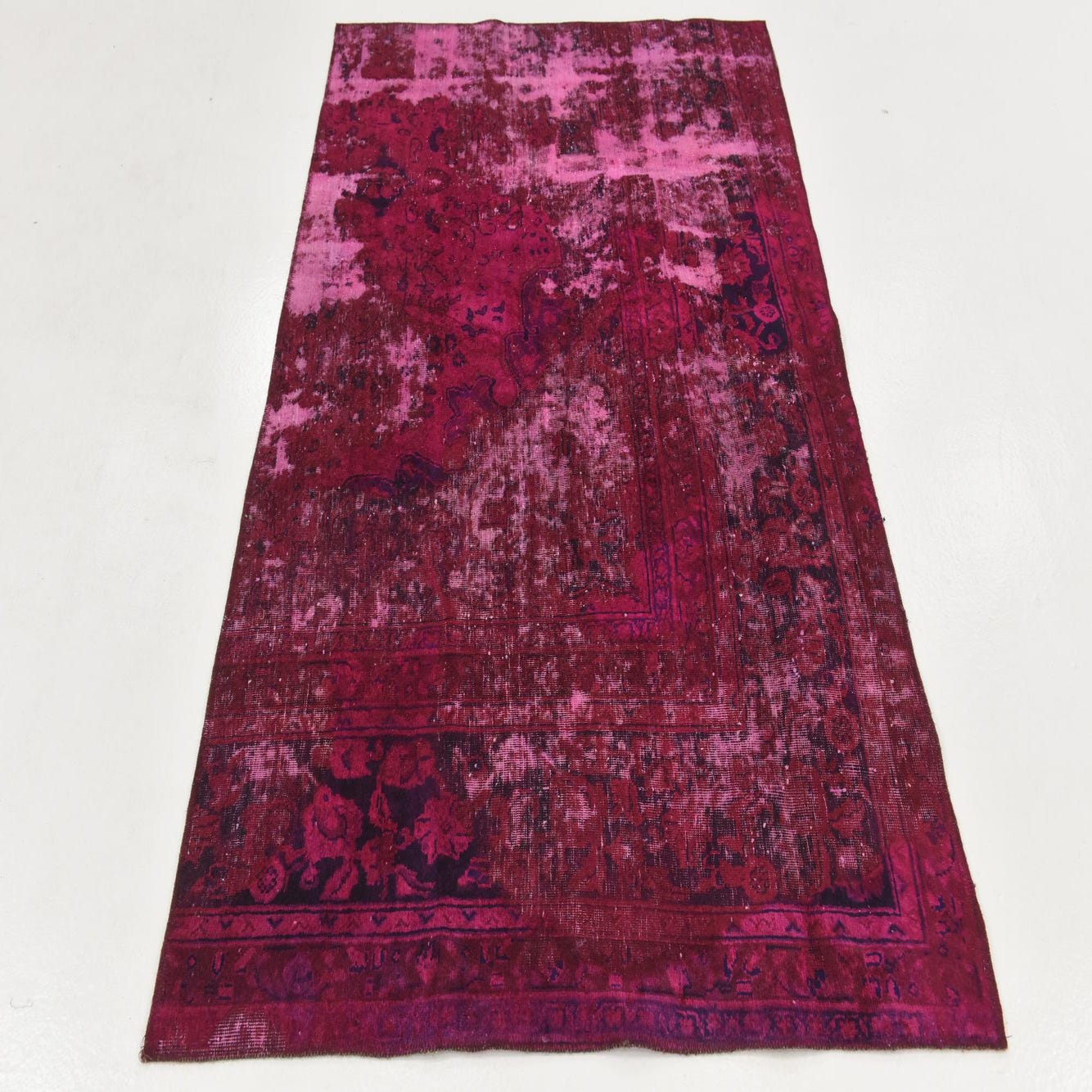 This Persian Ultra Vintage rug is an antique Persian Rug that has been washed, over-dyed, and then shaved down to a low pile. Look at the detail pictures to fully appreciate the uniqueness of this piece.