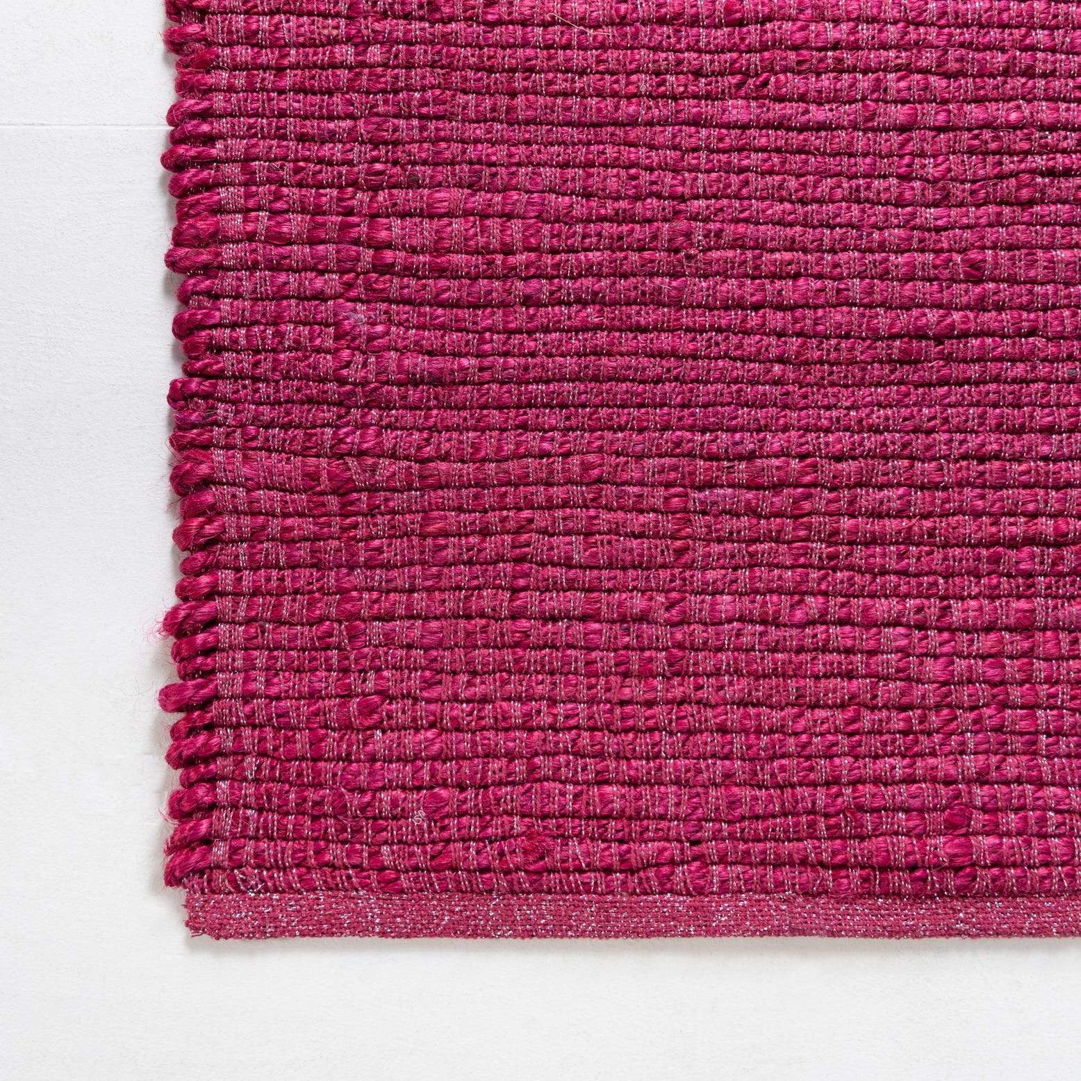 Primary color is Magenta. Colors in this rug include: Magenta, Silver.