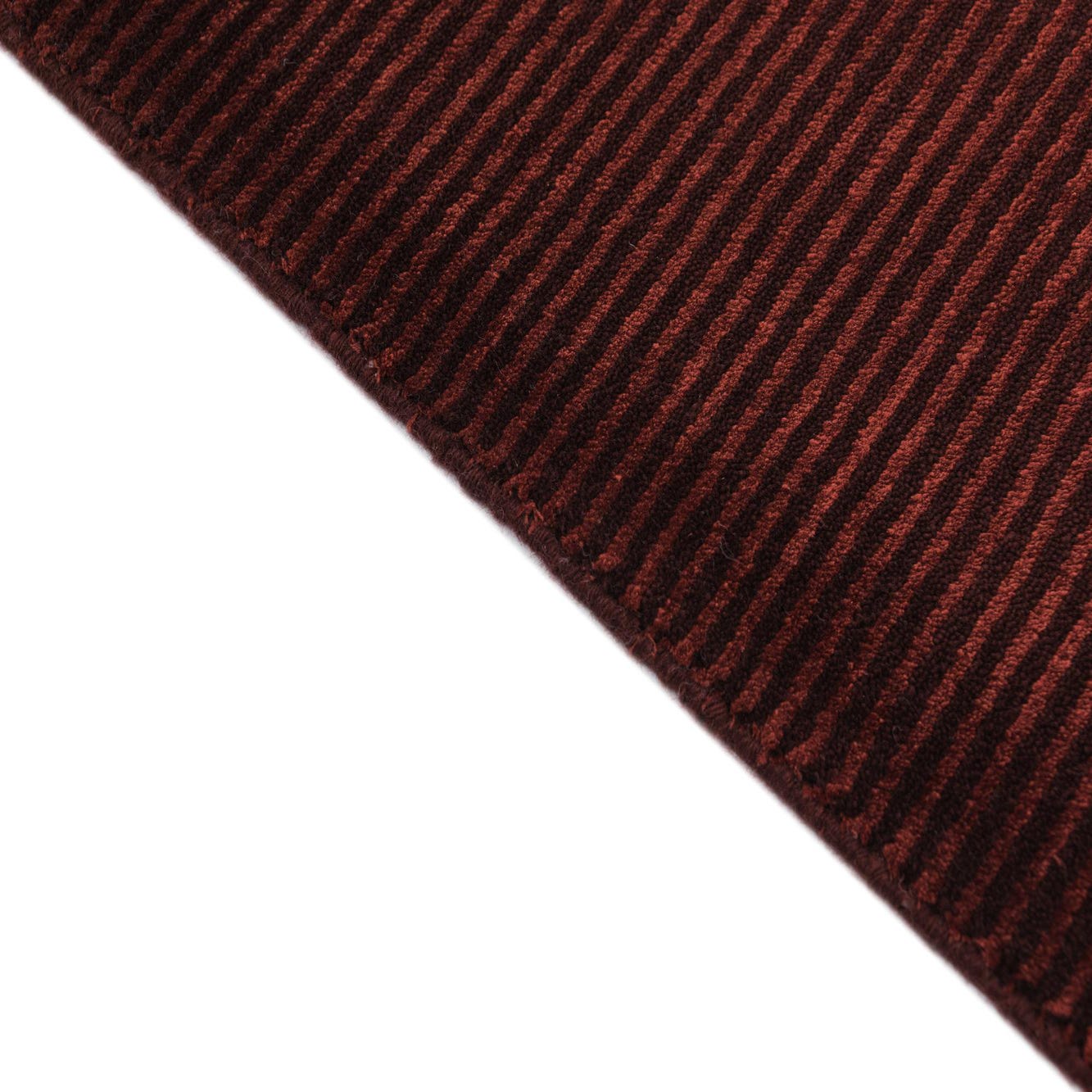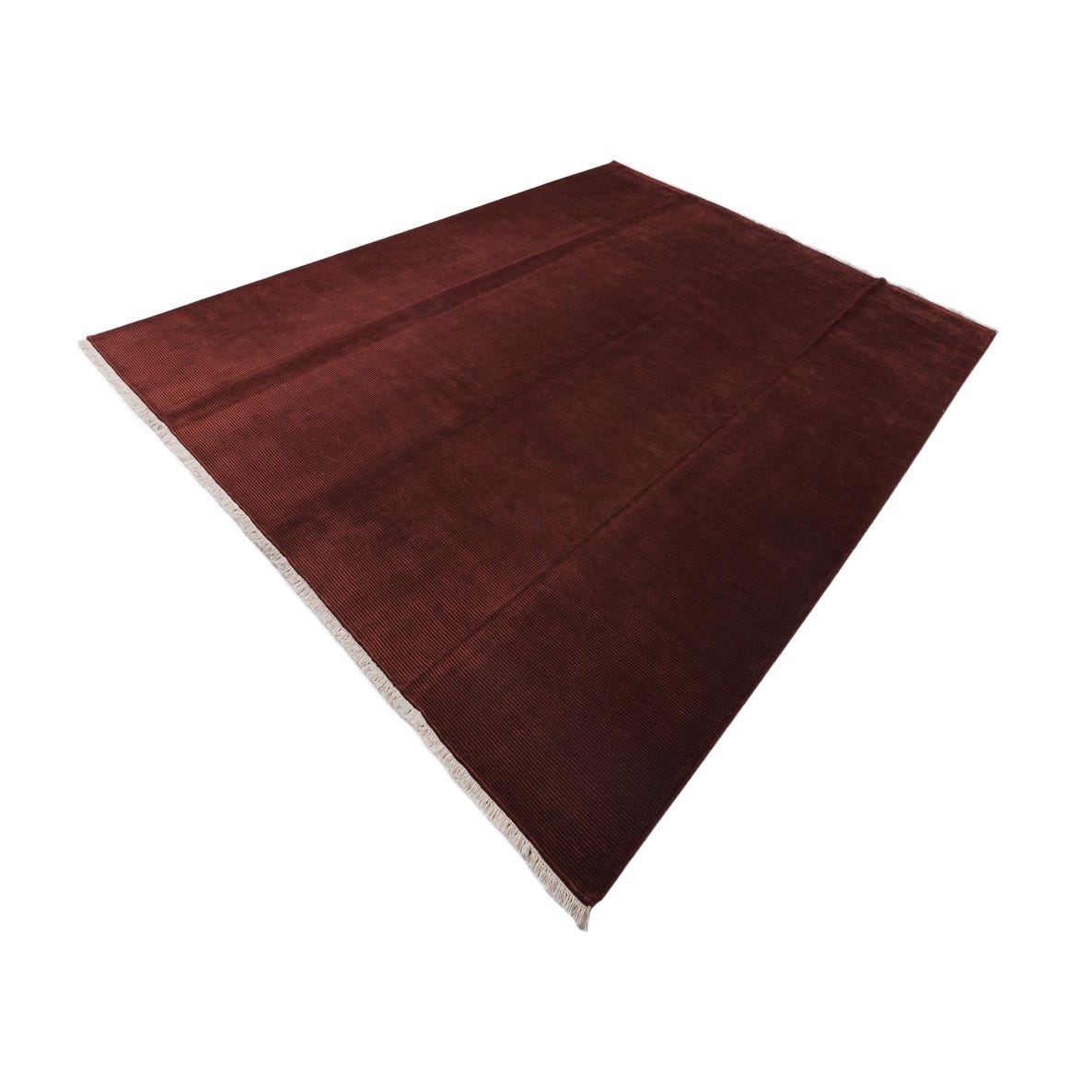 A large 10x13 rectangular Darya rug in deep red wool with subtle horizontal ribbing and two vertical darker stripes.
