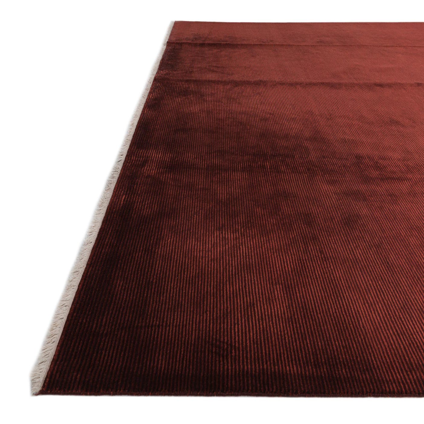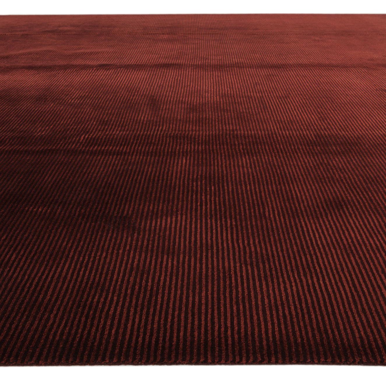 The Darya Collection presents a distinguished hand-knotted rug crafted from 100% wool, which promises both longevity and a luxurious feel underfoot. This 10x13 piece boasts a rich maroon background, providing a deep base that can ground a room's aesthetic. The rug's surface exhibits tonal variances with subtle stripes in shades of red, burgundy, and maroon that create a sophisticated and understated visual texture.