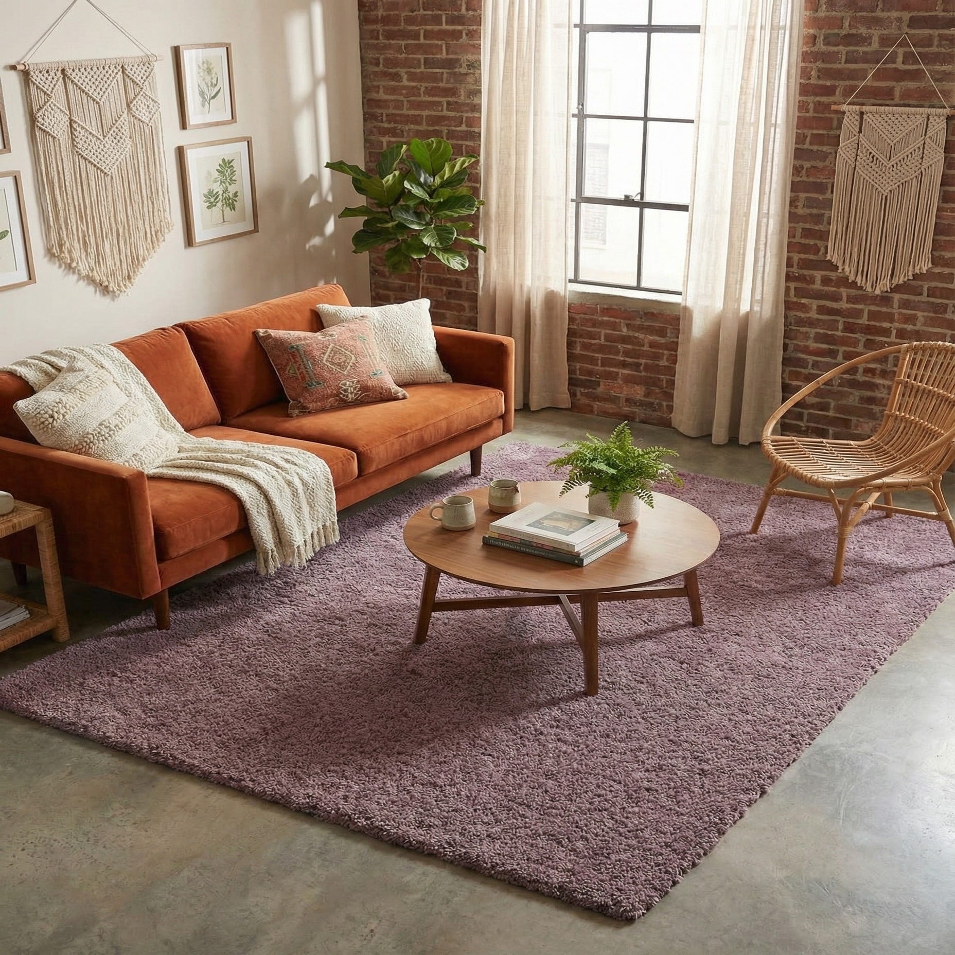This piece works well as a cozy anchor in a bedroom or reading nook, layered under a low-profile sofa in a modern living room, or placed beneath a vanity or dressing area for a touch of warmth. Pair it with warm neutrals and natural woods for a calming palette, or combine it with jewel-toned accents, velvet upholstery, and brass details for a more polished, contemporary look. The understated solid design makes it easy to integrate into minimalist, mid?century, or glam interiors. Materials: Machine-made, 100% polyester.