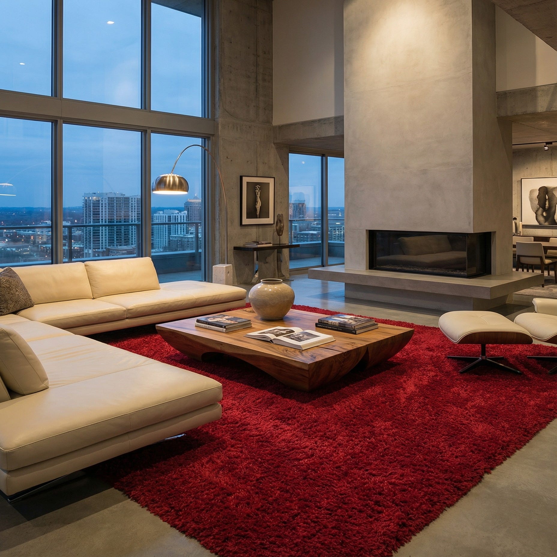 This rug works well as an anchor in a modern living room beneath a low-profile sectional, layered under a bedroom suite for added warmth and comfort, or placed in a reading nook or media room to deepen the color palette. Pair it with neutral upholstery and brass or black metal accents for a contemporary contrast, or combine it with cream linens and wood tones to bring a cozy, pulled-together feel to the space.