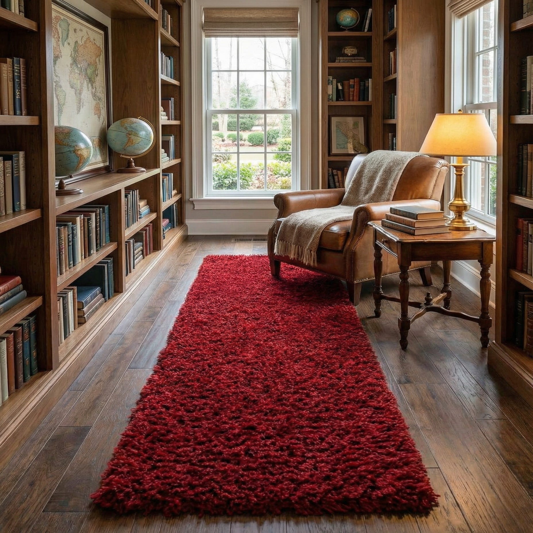 This runner works well in hallways and entryways to add a welcoming stretch of color, alongside a bed to create a cozy path when you step out, or in a galley kitchen to soften a high-traffic zone. Pair it with warm wood tones, leather seating, or neutral upholstery for balanced contrast, or use it to introduce rich color in a modern or transitional scheme.