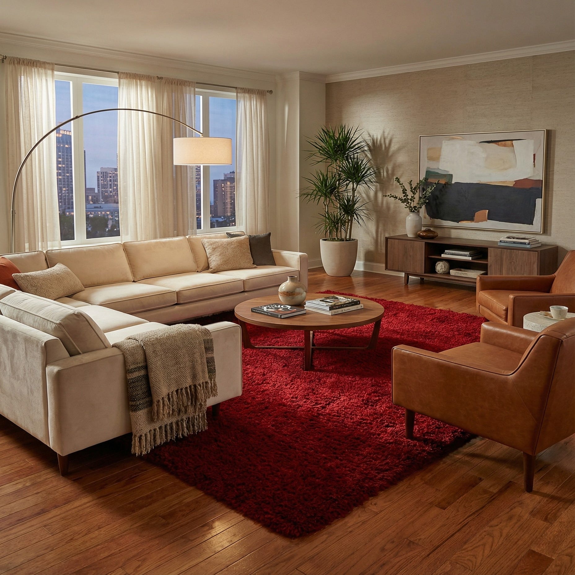 Running your hand across the surface reveals a thick, cushiony texture that invites bare feet and relaxed lounging. Use it to anchor a living room seating area, add color and comfort beneath a bed, or create a cozy media-room floor. The merlot tone pairs well with warm wood floors and neutral upholstery, and it also complements metallic accents or deep jewel-toned accessories for a layered, sophisticated look.