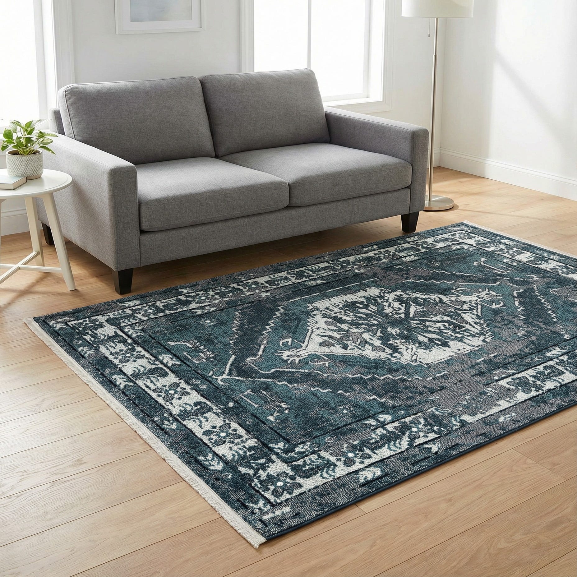 Machine-made from 85% polypropylene and 15% chenille, the surface has a soft, slightly plush hand where chenille provides a gentle sheen and polypropylene adds stability. The low-to-medium profile lays neatly under furniture and feels comfortable underfoot, making it well suited for a living room seating area, a bedroom, or a home office. Pair it with light wood tones and neutral upholstery for a calming palette, or combine with navy accents and brass finishes for a richer, layered scheme.