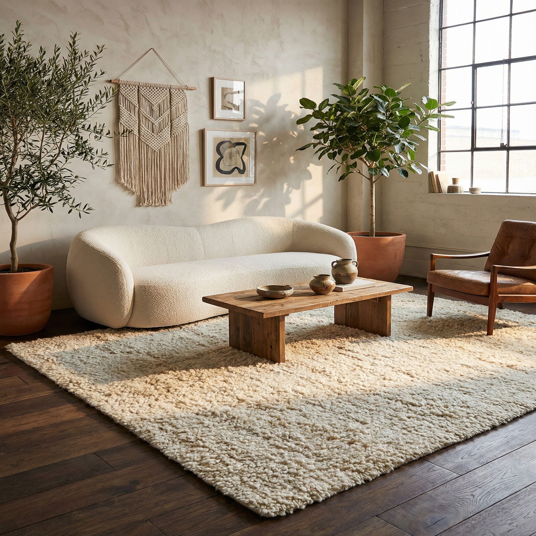 This rug fits well in contemporary and Scandinavian-inspired rooms where a neutral foundation is desired. Use it to anchor a seating area beneath a coffee table, soften a bedroom footprint at the bedside, or add warmth to a reading nook. It pairs nicely with natural wood tones, light leathers, and soft textiles for a layered, relaxed aesthetic, and also works as a calming counterpoint in more minimalist interiors.