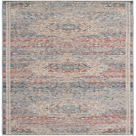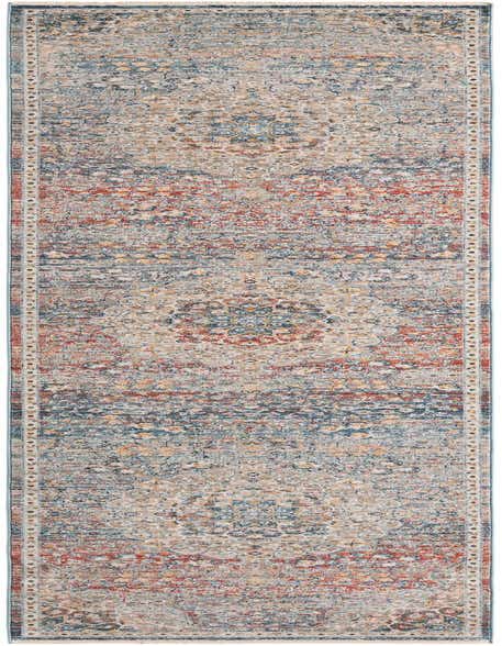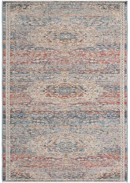 Primary color is Multi. Colors in this rug include: Multi, Blue, Gray, Ivory, Light Blue, Light Brown, Rust Red, Terracotta.