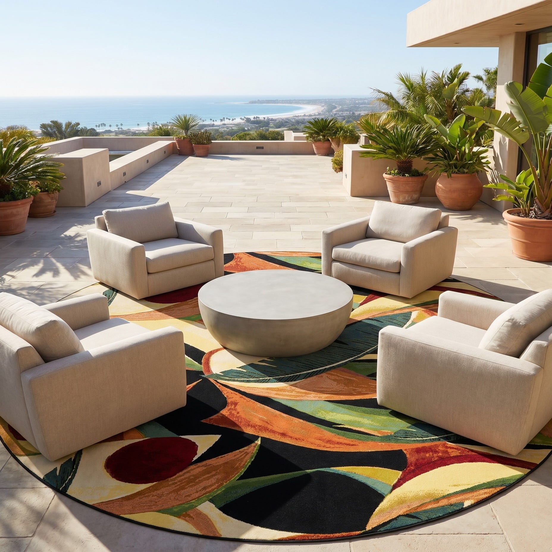 10' x 10' Easy-Clean Botanical Indoor / Outdoor Round Rug