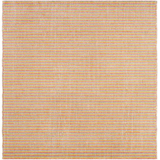 A 10 ft runner rug with horizontal stripes in various bright colors including yellow, pink, and light blue, suitable for a hallway.