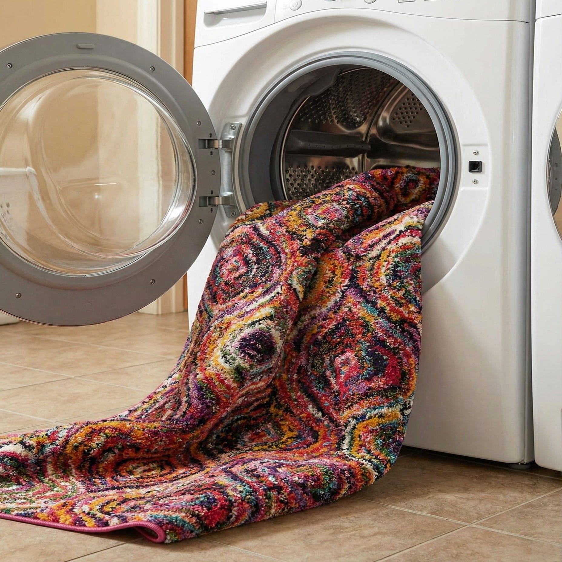 Machine-made from 100% polypropylene, the pile has a plush, slightly shaggy hand that feels soft underfoot while holding the color contrasts with clarity. This runner works well in narrow spaces where color and pattern can make a strong statement: use it to enliven a hallway or stair landing, guide traffic through a kitchen aisle, or add personality along a bedroom corridor. Pair it with warm wood flooring and neutral upholstery to let the rug be the focal point, or layer it with solid rugs and pillows in navy, ivory, or gold for a coordinated, collected look.