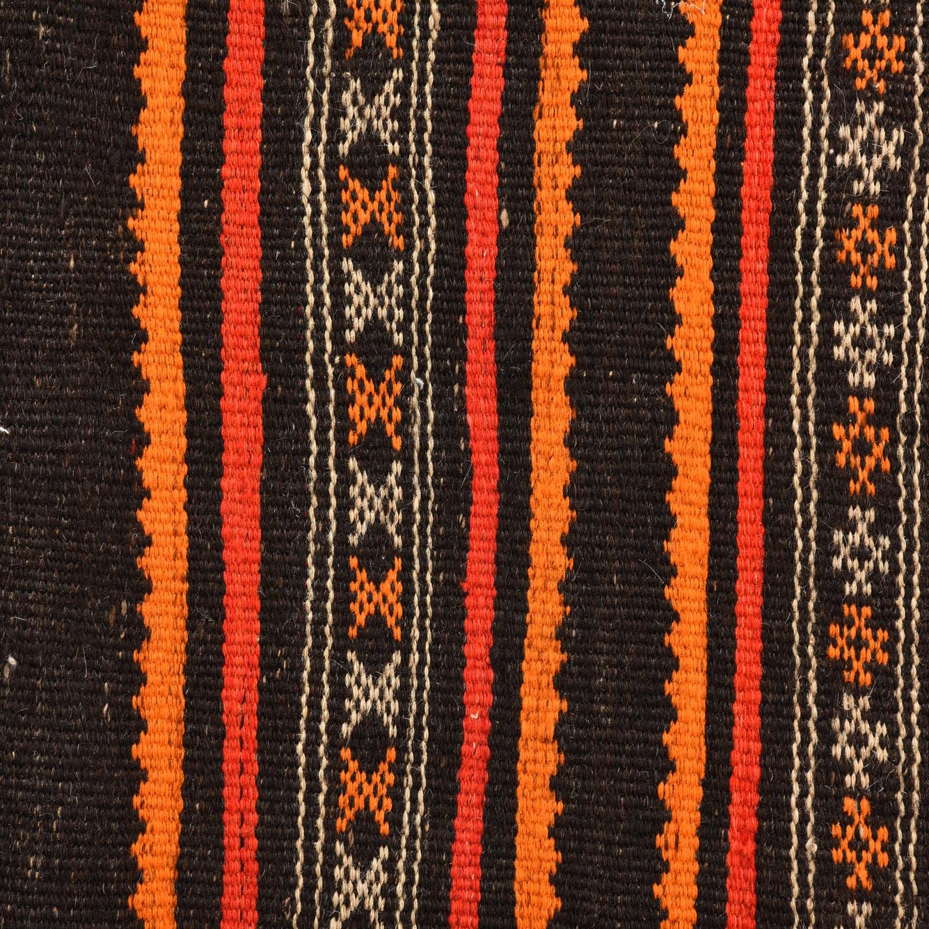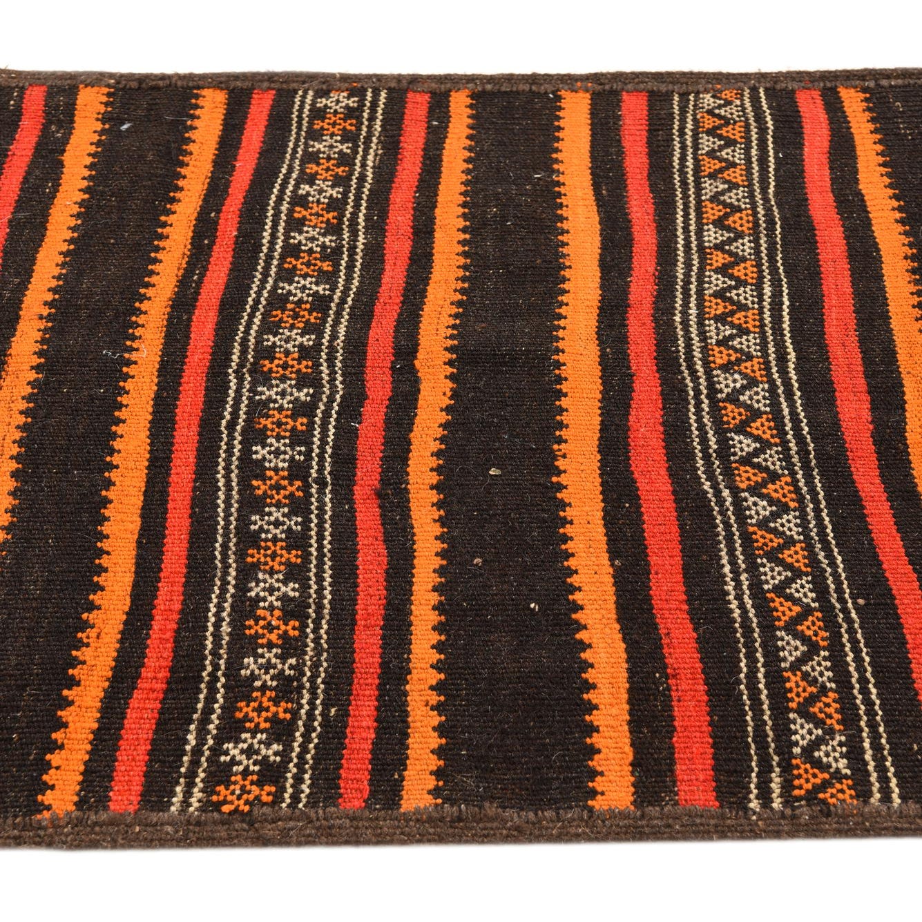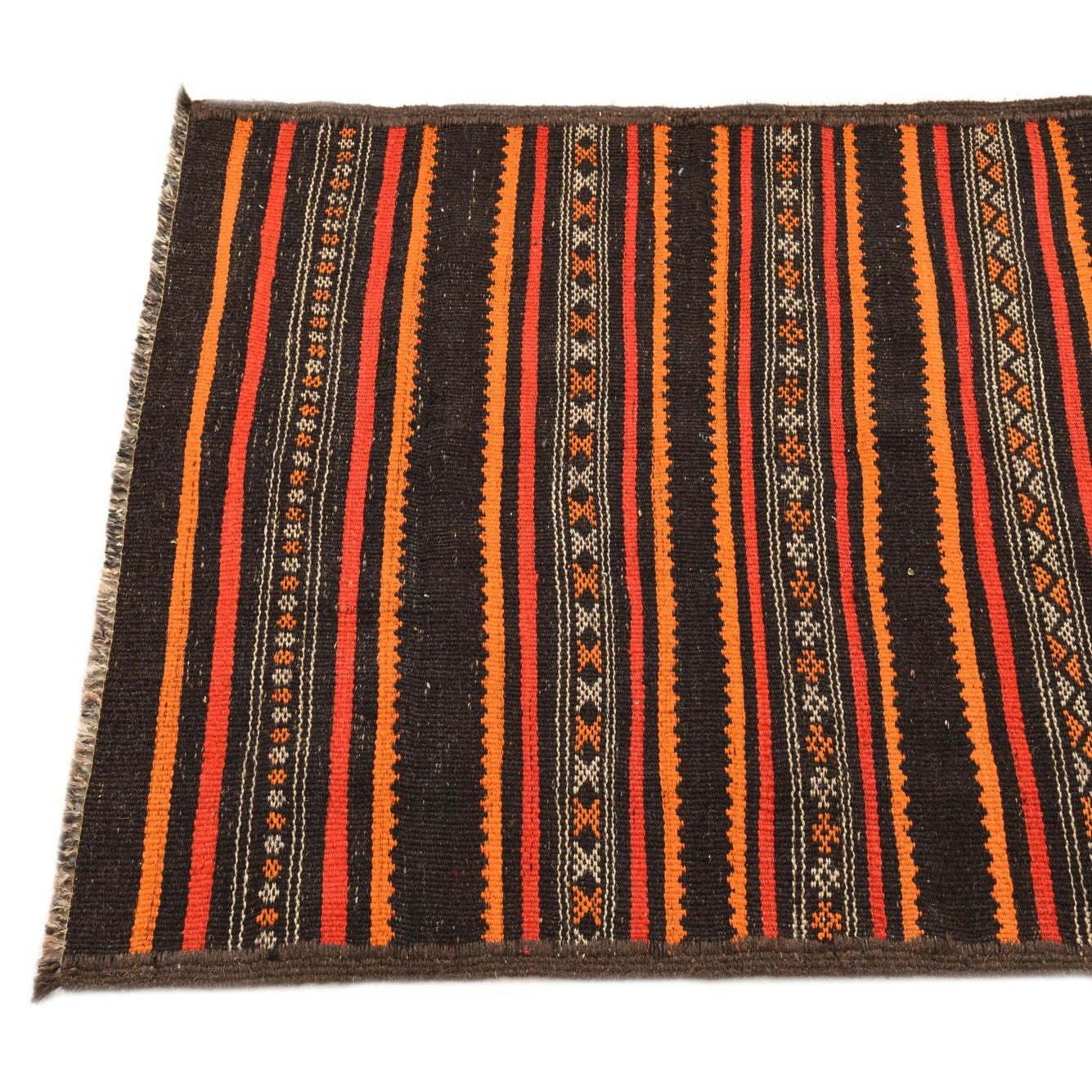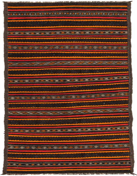 Primary color is Multi. Colors in this rug include: Multi, Brown, Orange, Red, Ivory.
