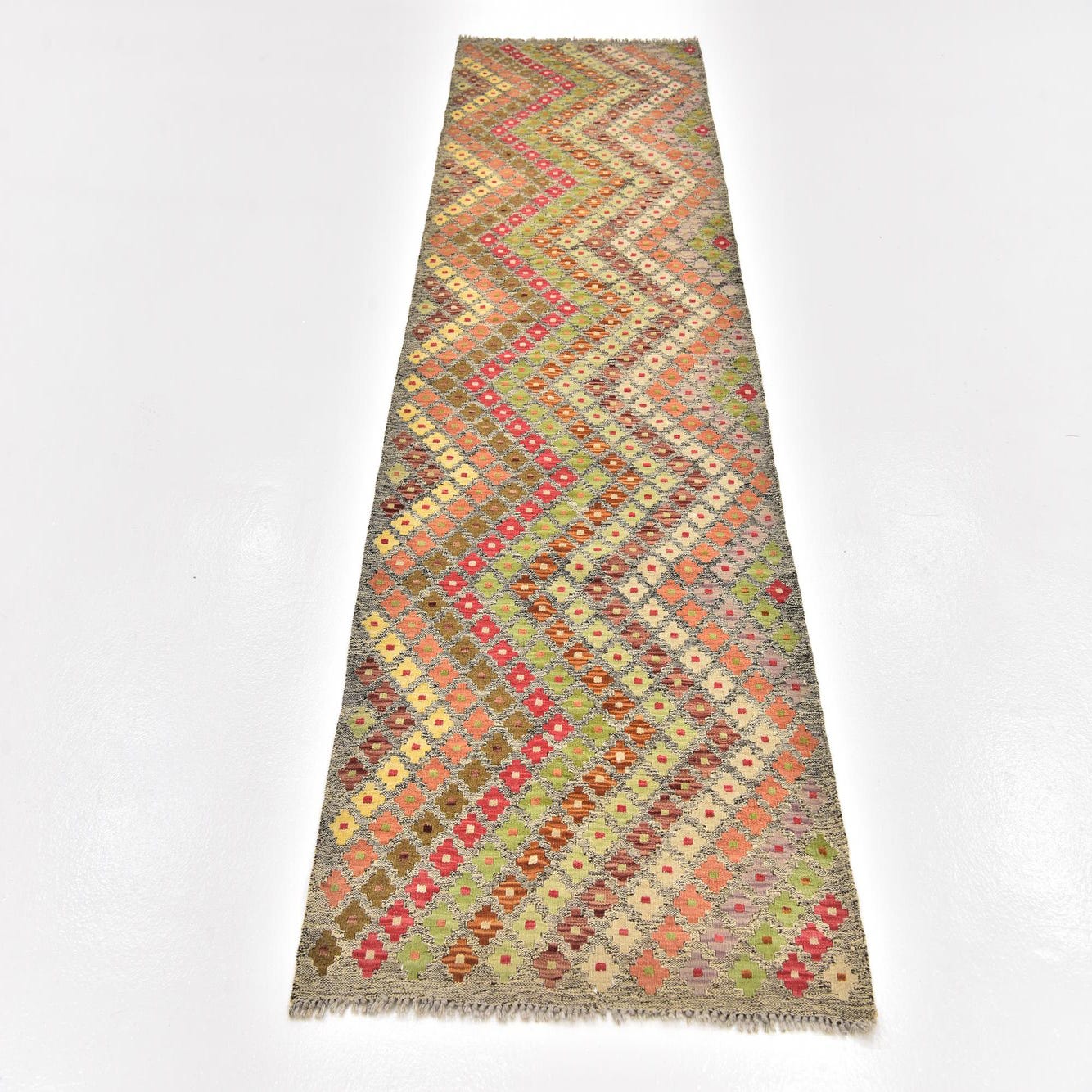 3' x 9' 8 Hand Woven Kilim Modern Wool Runner Rug