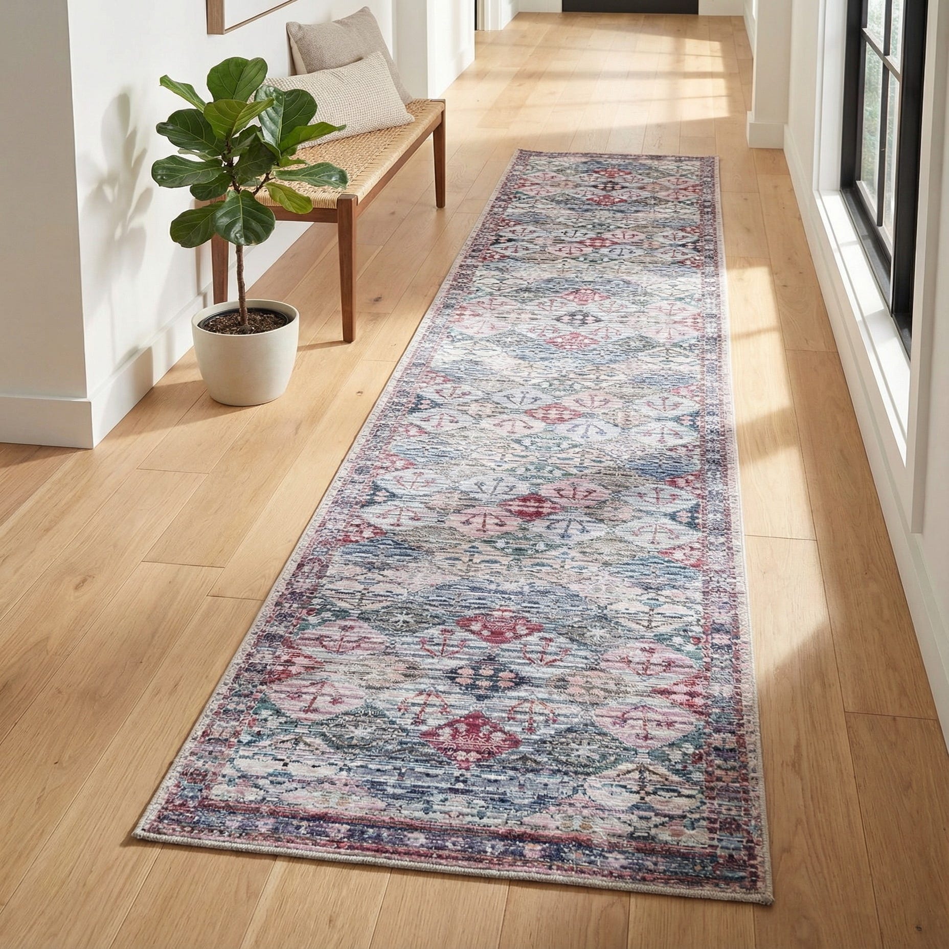 Owing to its stain-resistant and machine washable qualities, this runner is a practical addition to spaces like hallways, kitchens, or entryways. It is also pet-friendly and made from recycled materials, aligning well with eco-conscious decorating principles.
