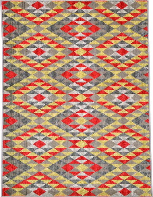 Primary color is Multi. Colors in this rug include: Multi, Beige, Gold, Gray, Red.