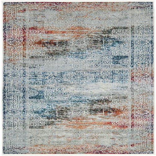 Primary color is Multi. Colors in this rug include: Multi, Gray, Green, Ivory, Olive, Orange, Red, Light Blue, Blue.