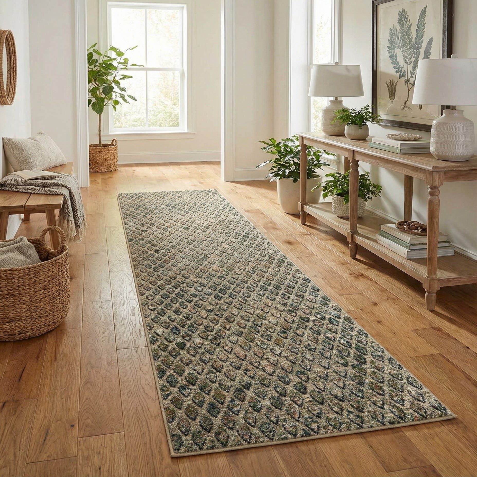 Primary color is Multi. Colors in this rug include: Multi, Beige, Black, Ivory, Light Blue, Light Green.