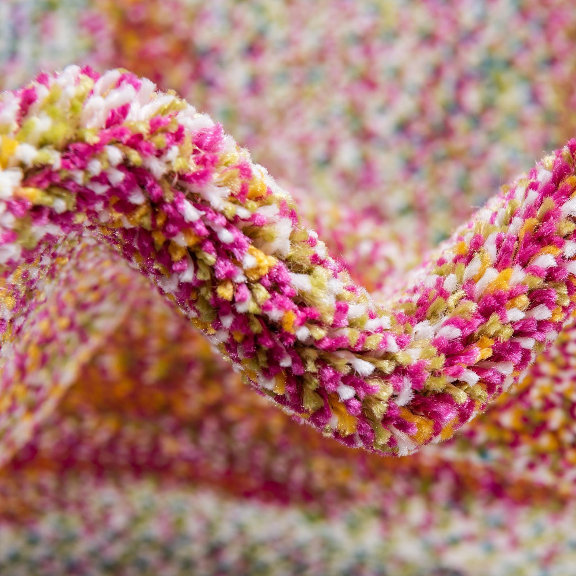 Machine-made of 100% polypropylene, this runner combines lively color with a tight, even construction. It works well in a bright hallway or entry to introduce color and rhythm, and pairs naturally with midcentury or contemporary furnishings that echo the geometric lines. For a softer look, layer it beneath neutral seating and warm wood tones in a living room, or use it in a child’s room or play area where the playful palette becomes a focal point.