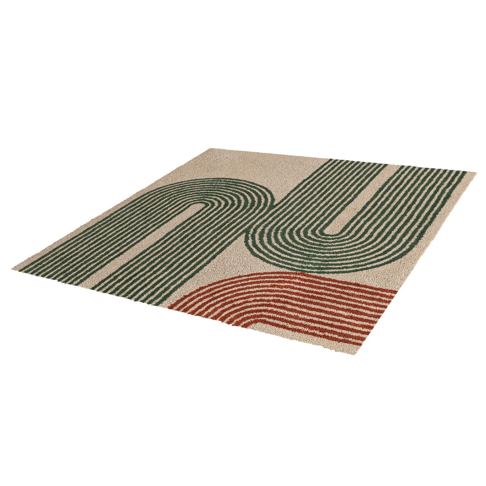 Primary color is Multi. Colors in this rug include: Multi, Beige, Green, Red.