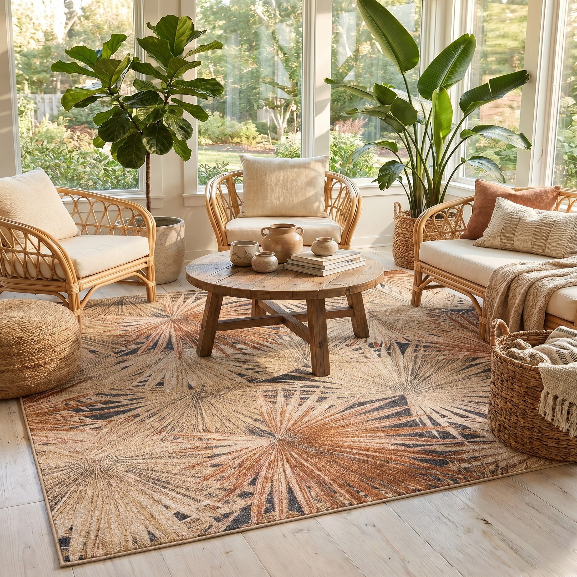 10' x 10' Easy-Clean Botanical Indoor / Outdoor Square Rug