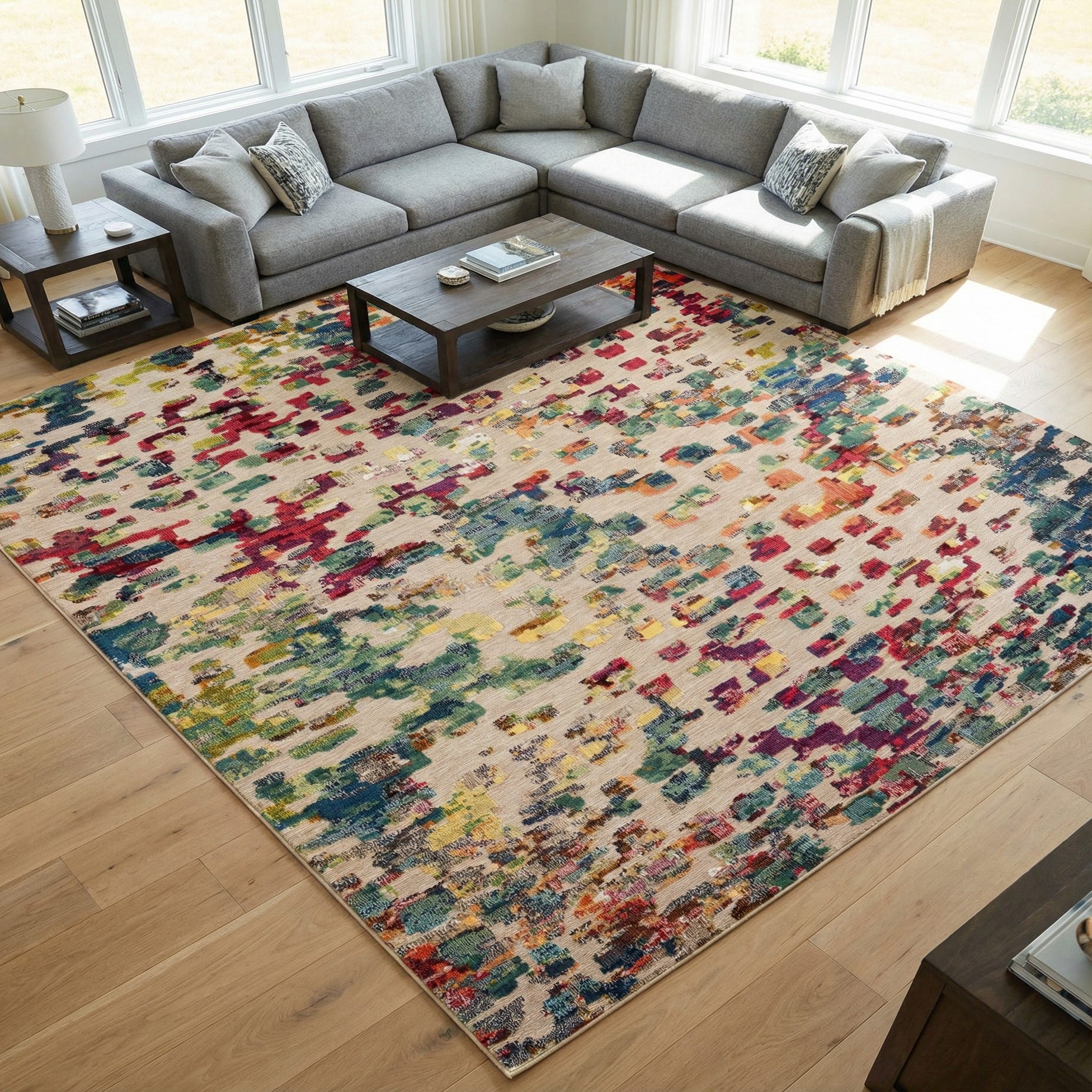Primary color is Multi. Colors in this rug include: Multi, Beige, Blue, Brown, Green, Ivory, Light Blue, Light Brown, Light Green, Navy Blue, Orange, Red, Teal, Turquoise, Yellow.