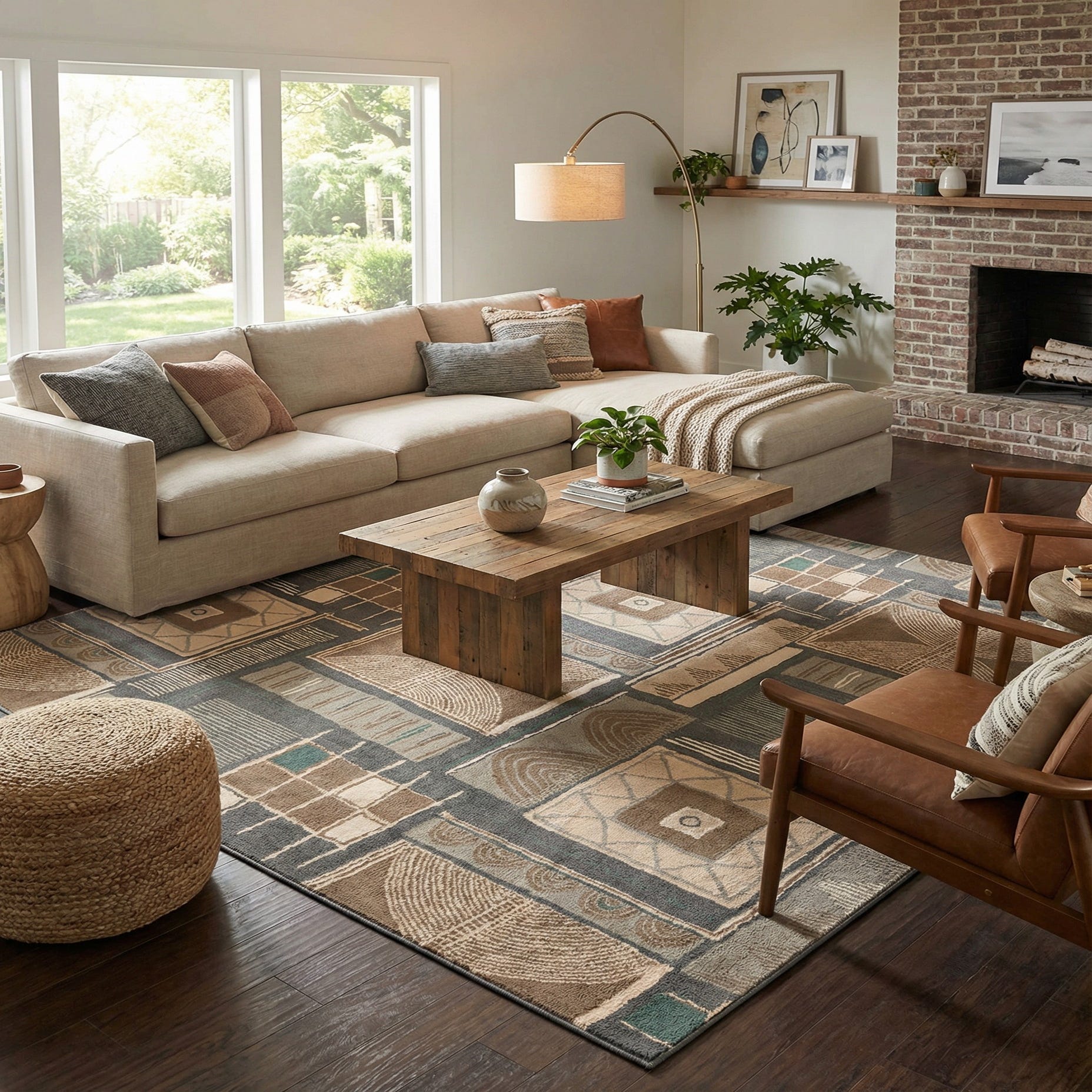 The array of colors and contemporary design makes it a versatile addition to various interior spaces. This rug would work exceptionally well in a minimalist or Scandinavian-inspired room where its patterns could create a focal point. It is equally suited to complement a modern or industrial decor by adding a touch of warmth and intricate design without overwhelming the space.