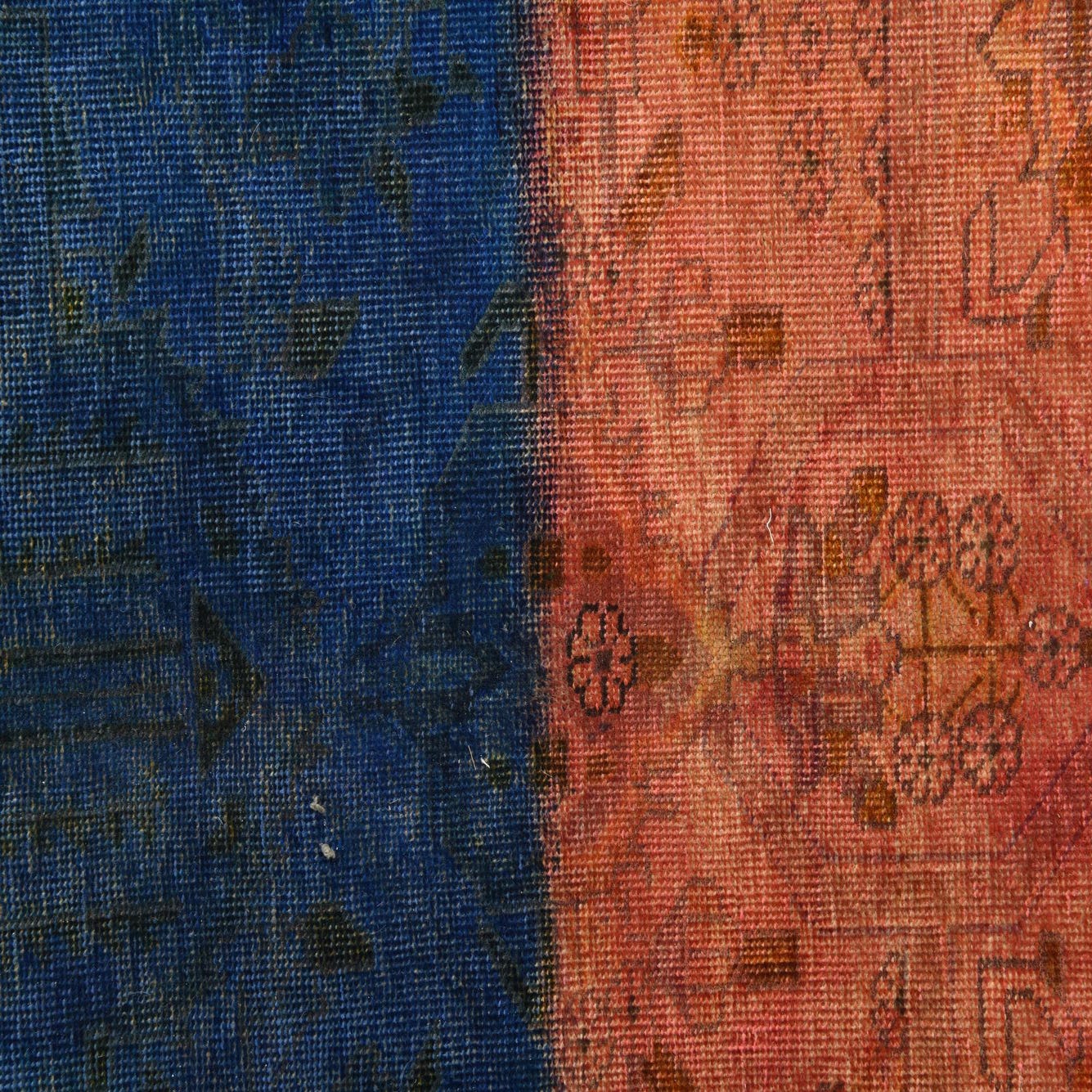 This piece brings a well-traveled, vintage character to modern interiors. Place it under a sofa and coffee table to anchor a contemporary living room, beneath a dining table to introduce color without competing with tableware, or at the foot of a bed to add warmth and depth to a bedroom. It pairs especially well with mid-century wood furniture, natural linens, leather accents, or a minimalist gallery-style space where the rug can act as the primary source of color and pattern.