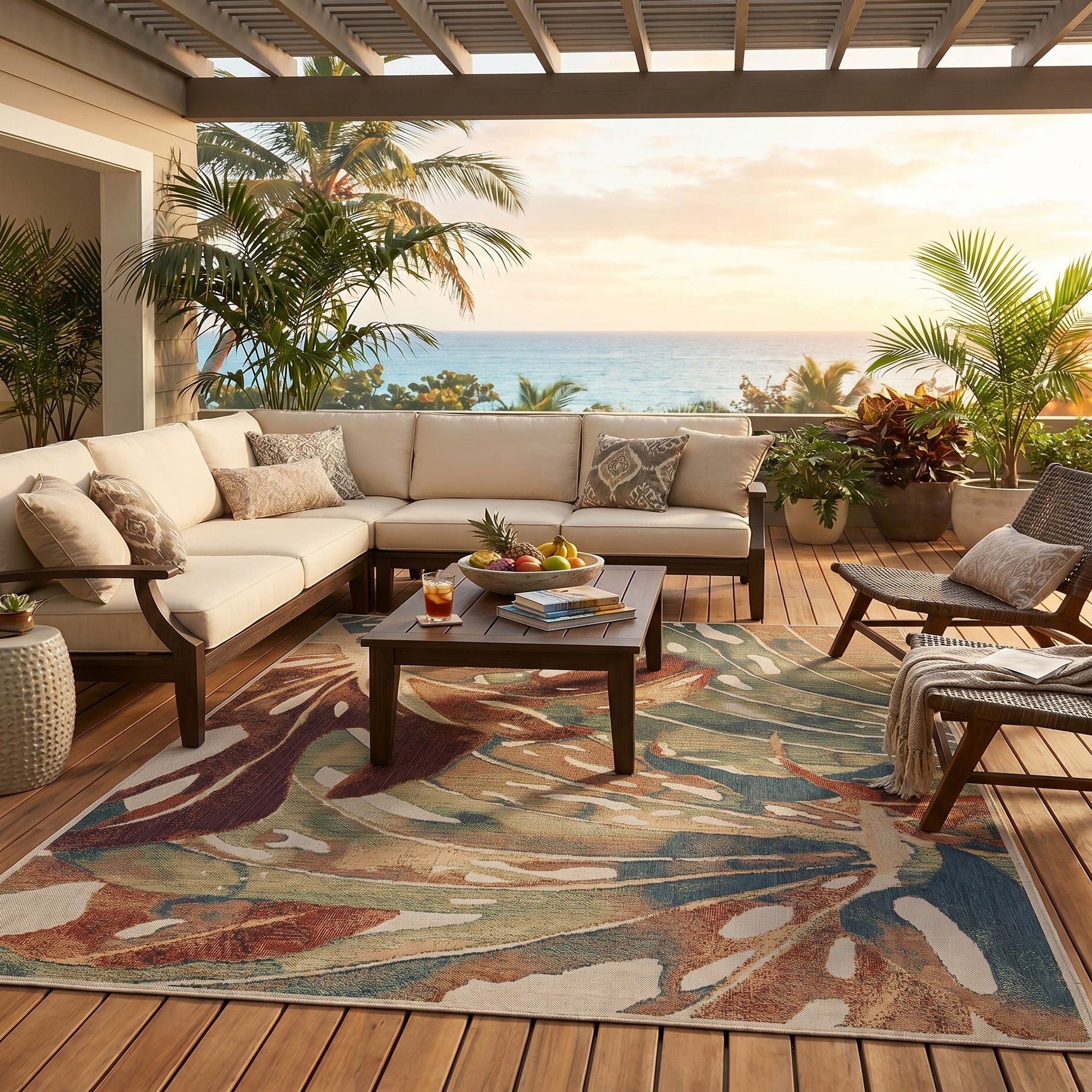 This rug perfectly suits my space and needs. I wanted something durable and colorful. The colors are beautiful; just as pictured! It's made well shipping was quick and the sale price was great. BUT...one problem and it's significant; it came so tightly rolled (inside out) that I have not been able to get it to lay completely flat. Because of the rigid material it's made of (it's an outdoor rug) it's been impossible to handroll it to flatten it. I have laid it out upside down with weights on the ends but even after several weeks the ends still curl up. It's created a tripping hazard. HELP!