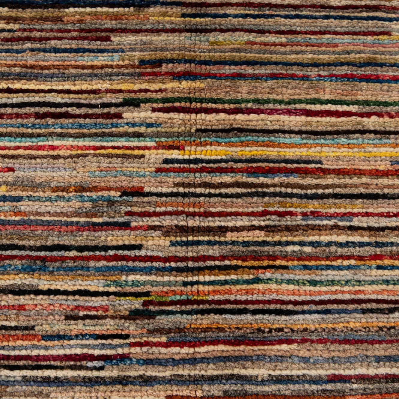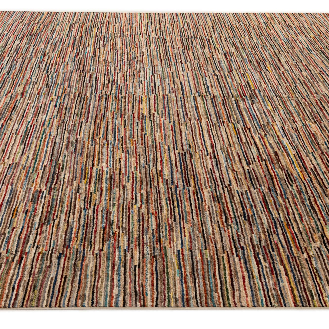 A 10x13 rectangular multi-colored Modern Ziegler rug with a horizontal striped pattern, suitable for a living room.