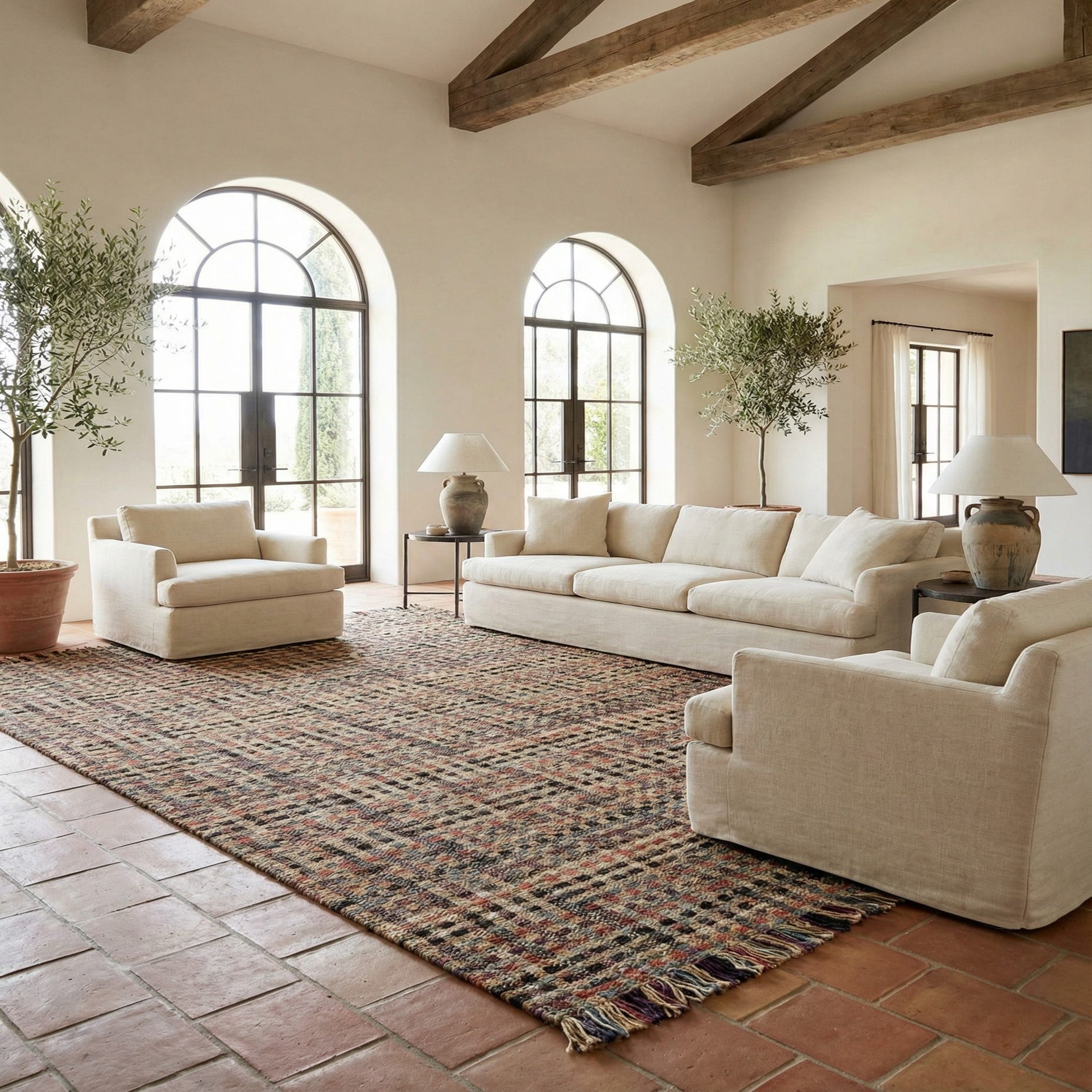 Well-suited for a range of decor scenarios, this piece would thrive in spaces that favor natural materials and artisanal elements, such as bohemian, coastal, and modern farmhouse interiors. Its substantial size makes it a suitable anchor for living areas, dining rooms, or spacious bedrooms. The blend of warm and cool tones within the rug allows for versatile color coordination, enabling it to harmonize with various color schemes and furniture finishes.