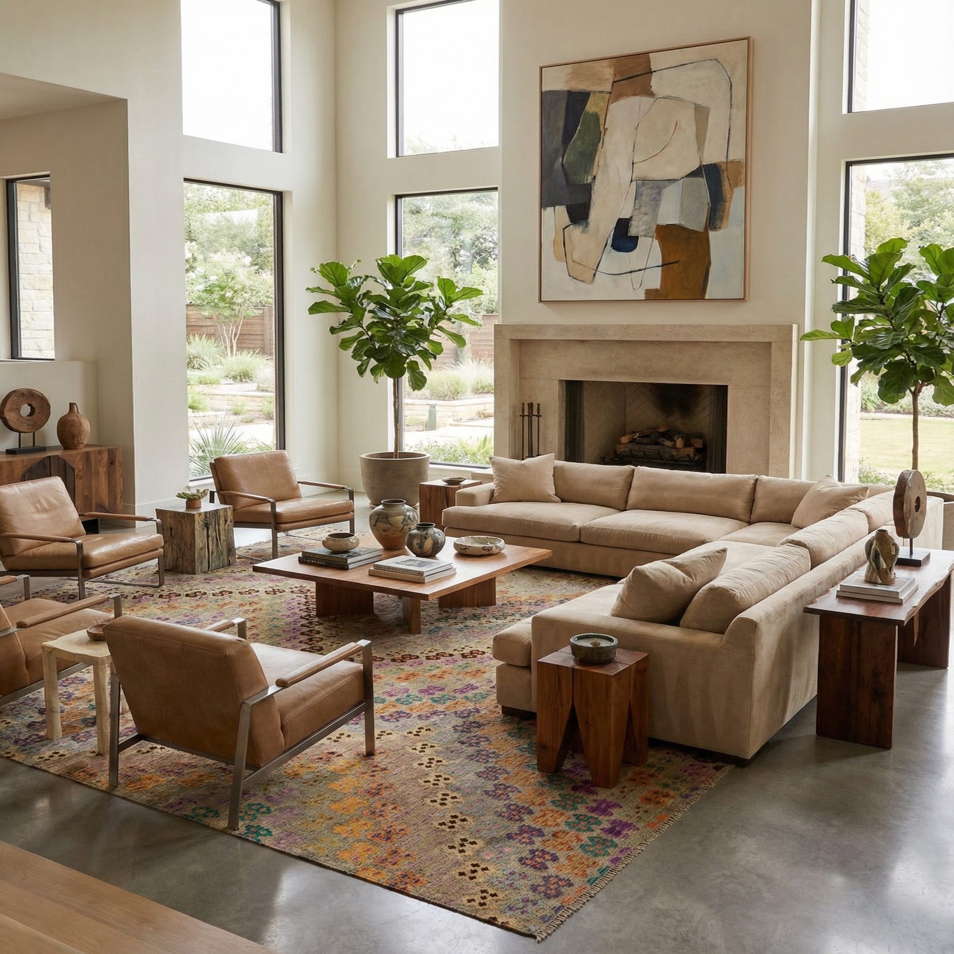 Primary color is Multi. Colors in this rug include: Multi, Beige, Blue, Brown, Cream, Gold, Gray, Green, Navy Blue, Olive, Orange, Purple, Red.